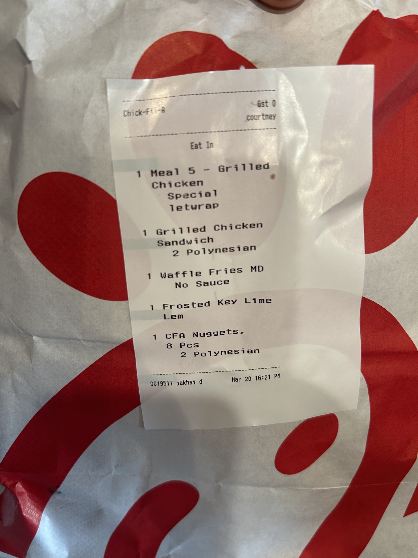 Read moreI would like to open my review by stating that my experience was totally my fault. I know better when it comes to this location. The service and quality always leave much to be desired, and if it weren’t for a craving from my girlfriend I would never have visited. Everything here is subpar. I don’t know if this is due to it being a Rest Area franchise or staffing. It may be a combination of both, but a lot of this location’s deficiencies are due to its staffing. The employees here lack urgency and courtesy, and I have yet to see a group less dedicated to upholding the quality and customer service that should be expected of a Chick-Fil-A. The fries are never fresh and always taste like they are made in old oil or in an unclean fryer. I exchanged my fries during my most recent visit (today) and was given another batch of fries of even worse quality. To make matters worse, the exchange was performed by the manager, who was clearly unconcerned about the issue, evidenced by her seemingly being perfectly ok with giving me even worse fries lol. The chicken products are just “ok”. Normally, I wouldn’t even care this much, as I never come here. But, after spending nearly $40 (in this economy!) on food this unsatisfying, I had to leave a review in an attempt to warn other potential customers. This place will never get another...