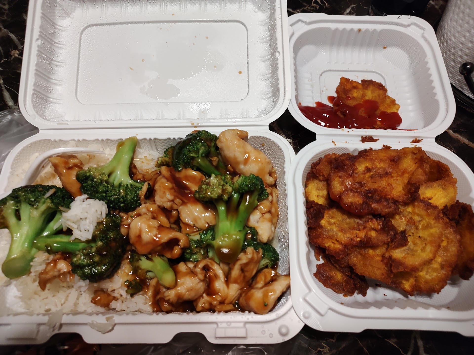 I must say, as a foodie I am quite disappointed in the quality of food in this establishment. I cannot understand how you put quantity over quality. First and foremost, the encounter with the man at the counter was typical. I told him the food I ordered, he asked for my number, gave it to verify and then made the transaction. The food was actually cheaper than most Chinese restaurants around the area. I called ahead to make sure they get my order instead of ordering on the spot. The man got the fried plantains less than a minute later. What really got me lost is the fact that the man left the order on the front, and never packaged it. Waited another 5 minutes till the lady packaged the order and I was on my way. My expectations for good tasting food had dropped, as I was getting a scent of pork inside the container of the fried plantains, but that's nothing yet. When I reached, I opened the container for the fried plantains and there you have it. Nothing but some nice crispy and crunchy burnt plantains with a little reek smell of pork, which confirms the fact that they fry the pork in the same fryer as the plantains. Seeing the texture and condition of the plantains, I didn't get phased by seeing the condition of the Chicken w broccoli and white rice. Rice was stale and chicken w broccoli was full of grease. Ate two burnt plantains and two spoons of the greasy chicken with broccoli, and decided to just throw it out one time. I would definitely not recommend this establishment to anybody that is looking for a spot for...