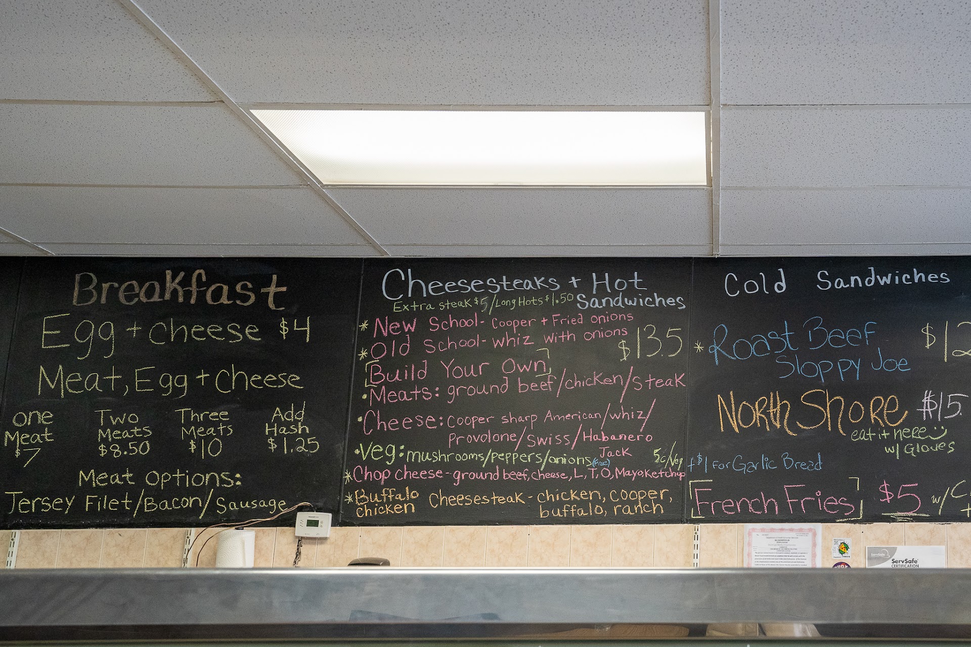 The cheesesteak I got is âThe New Schoolâ. This is fresh shaved ribeye (no gristle might I add) with fried onions and Cooper Sharp on a seeded roll. If you order the old school it comes with whiz instead. Good amount of meat, tasty roll, cooper is just so good, and at a good price ($12.50). The North Shore beef is a massive pile of rare cooked roast beef topped with a tangy bbq sauce from Massachusetts (the owner drives there to get it), cooper sharp, and horseradish sauce on a toasted onion roll. These flavors together were fantastic. Itâs so messy they give you gloves to wear! I used roughly 17 napkins đ. Also had some fried corn fritters topped in a Big Mac style sauce that were really tasty.
