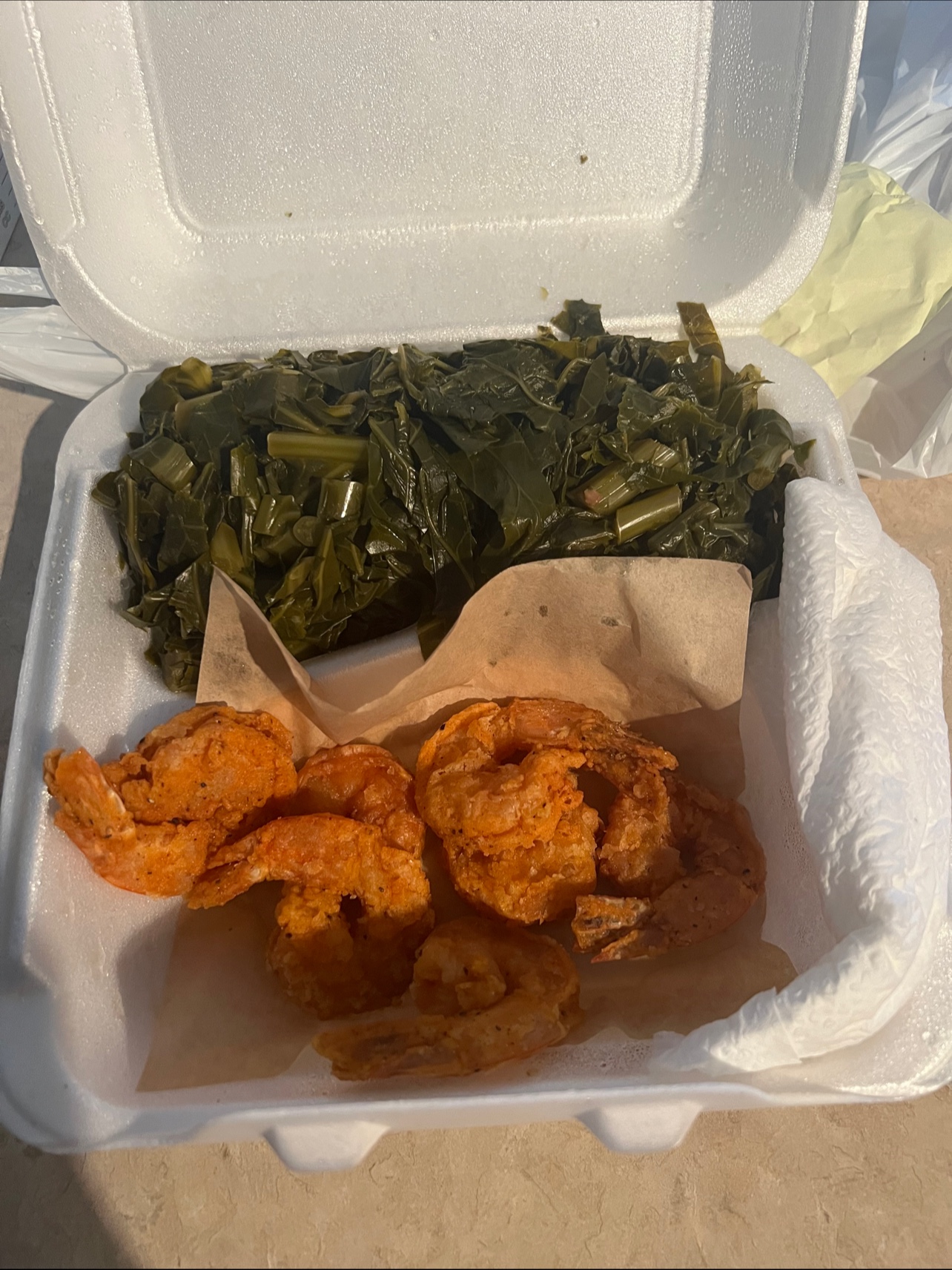 Ā Ā Ā Read moreThis place is VERY lack-luster! Nothing to write home about. The ambiance is nothing special just a SMALL box with seats & tables. It's so cramp that every time one of the waitress walked by, they hit our table. Speaking of the waitress, not the friendliest. When we walked in one of the girls asked us "for here or to go" ...when we said "here," she handed us two menus & told us to go sit wherever we want. Slim pickings because most of the other seats were taken & one of the open tables was dirty. On to the food, I got the turkey wings. When my food came out, I was surprised because they were "smothered" turkey wings - nothing mentioned that on the menu. They serve them over a small plating of yellow rice. They were nothing special and a little on the cold side. I got macaroni & cheese as one of my sides (it comes with two) - they were "OK" needed a little salt & pepper. My other side was collard greens - some of the worst I've had ...I like to think of myself as a "collard greens connoisseur" so I know good greens when I have them. These were not good at all & had a sweet taste to them like they were cooked with sugar. The hot sauce helped somewhat though. I also ordered a side of potato salad - watery & too much egg. A waste basically! On to the cornbread - it was burnt on the bottom & had a funny taste like it was sitting there since the morning.