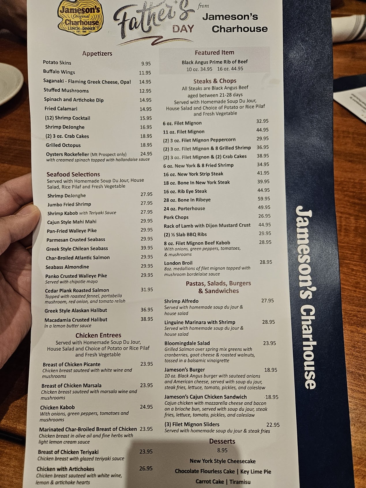 Read moreThis restaurant feels like its not sure what its trying to be. There is an emphasis on Greek items across the menu, a lot of Italian items But the sign says Charhouse and Seafood. There are TWO items on the Seafood section. I'll give them a break on that since they had all the fish on the specials menu.