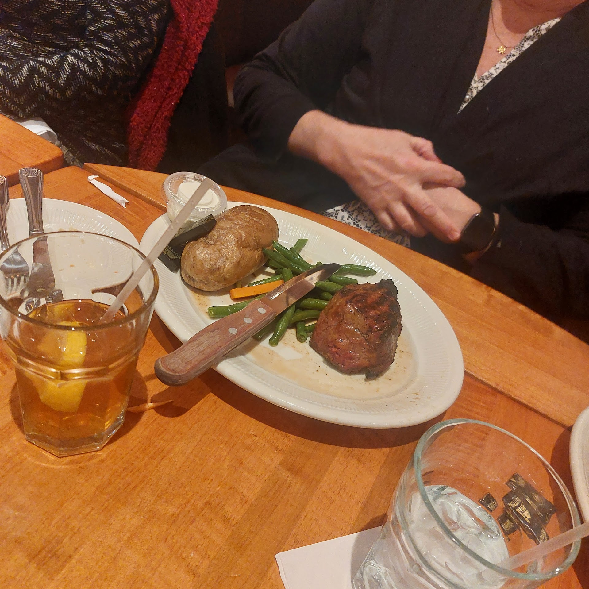 My friend and I decided to treat ourselves to a steak dinner pre-Christmas. Her family had been there at this location many times and had private parties in their small room in front and loved it this time my friend ordered a ribeye, and it came cooked incorrectly four times the third time the manager brought it out and she said it was fine. I said no that it was undercooked but she was like it’s fine and he walked away. Nobody ever came back and checked on us or on Her, the steak as she ate a little into it it was raw for more than I’d say 60% and she gave up at that point and didn’t want to send it back-and-forth time and decided she would just take it home and cook it and have it for dinner the next night I ordered a “” prime sirloin, which the first time came overcooked. It came well done when I asked for medium and the second time it was cooked pretty well. They did a decent job. I don’t think the meat was prime. I am not sure because there was no tenderness. It was a very tough piece of meat which I’ve never had any piece of prime meat that didn’t have marbling, which is what makes a prime, and is very tender because of the marbling, but mine was only cooked twice , at the end of the meal which both of us had food left of course because of the whole mood of the evening we ordered coffees and I had asked the server if they had decaf cappuccino and then decaf cappuccino and she told me I was very special and like a handful for asking that question and I didn’t really understand because I just wanted to know if they had cappuccino and then decaf cappuccino so at the end of our meal we received the check and there is not one thing taken care of not the coffees, not a steak nothing at all so I asked to speak to a manager the manager came to our table and I explained to him our dismay, and that we had been there three hours, which was not our plans And I thought that they should do something for us. We didn’t come there looking for a free meal we didn’t come there looking for a discount we came there to enjoy a girls night and have a great steak dinner which my friend thought we could there and he did take the check he took off the coffees he took off my friends steak and came back and gave us the check I N, and use the excuse that the server couldn’t find him. It was all his fault there was miscommunication. I’ve been in the restaurant business and I’ve worked as a server I would be embarrassed to give somebody a full check, and not an apology with the check on top of it, and sated them we’ve compensated for our errors , and this one just put down the check like nothing like pay the bill I will never be back even though the manager did take the initiative to acknowledge the fact that it was not good. What happened? The manager when talking to him told my friend that the reason the steaks were different on her second one I think was that they were older steaks, and now she was getting a newer steak and I don’t know what that meant, but boy was that an uncomfortable statement for a manager to make I’ve been as I said in the restaurant industry I’ve been an owner of manager Never what I say something like that to a customer then my friend got nervous that even though she had a few bites, she was eating old meat and old men a week a month a year we had no idea why he said that to us but anyway, I am very sorry that I drove all the way out there. It was not what we were both looking for and I hope it was just an off night for them because I haven’t had a bad meal like that. In a very long time. The manager was a nice person. I don’t wanna say he wasn’t an understood that we shouldn’t have gotten a mistake three times and even on the third time it was wrong , I hope that they get their act together and I hope that the server who was confident understands you shouldn’t really talk about a person’s personality to them at the dinner table when you’re waiting on them it’s not...