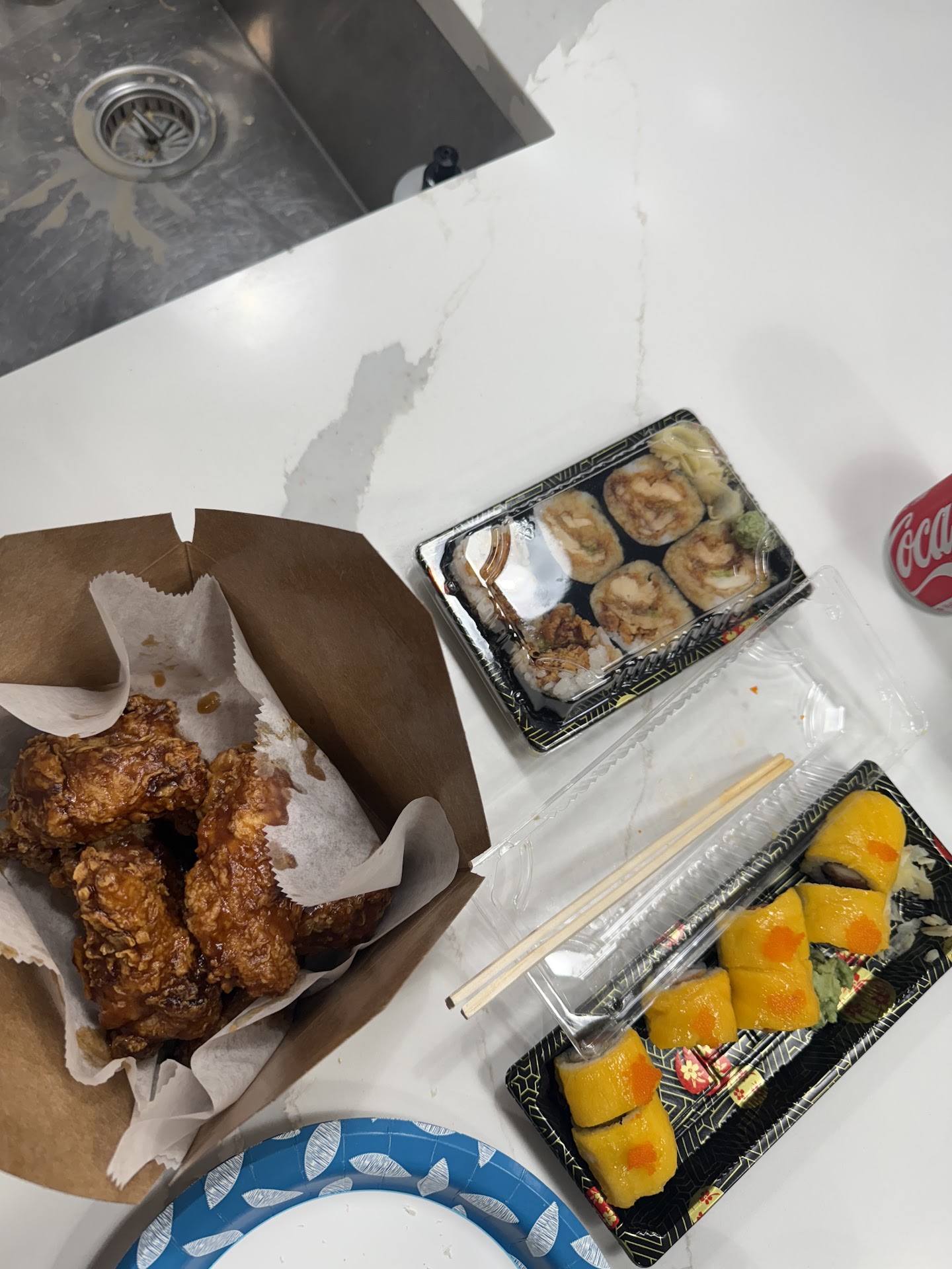 Read moreI really really wanted to like this place, but there were too many things to over look. First the food is ridiculously expensive, and definitely not worth the price. For almost $70 I got a half order of chicken wings, a rainbow roll, california roll, seaweed salad, and kimbap. The two sushi rolls has almost no flavor, but weirdly enough they put wasabi directly into the rolls. I've never heard of a california roll with wasabi, and I really don't like wasabi. The kimbap was also a really weirdo combo with spicy Korean hotdog and crab meat mixed into the traditional ingredients. Not a fan at all. The chicken was the biggest disappointment, it was oily and had almost no flavor. Definitely was not the crispy Korean fried chicken I'd been expecting. The seaweed salad wasn't bad, but again, they made it spicy, which I've never experienced in any seaweed salad I've eaten. I will give them another try, I've heard good thing about the ramen, but the main allure of the restaurant, the Korean fried chicken, was a total...