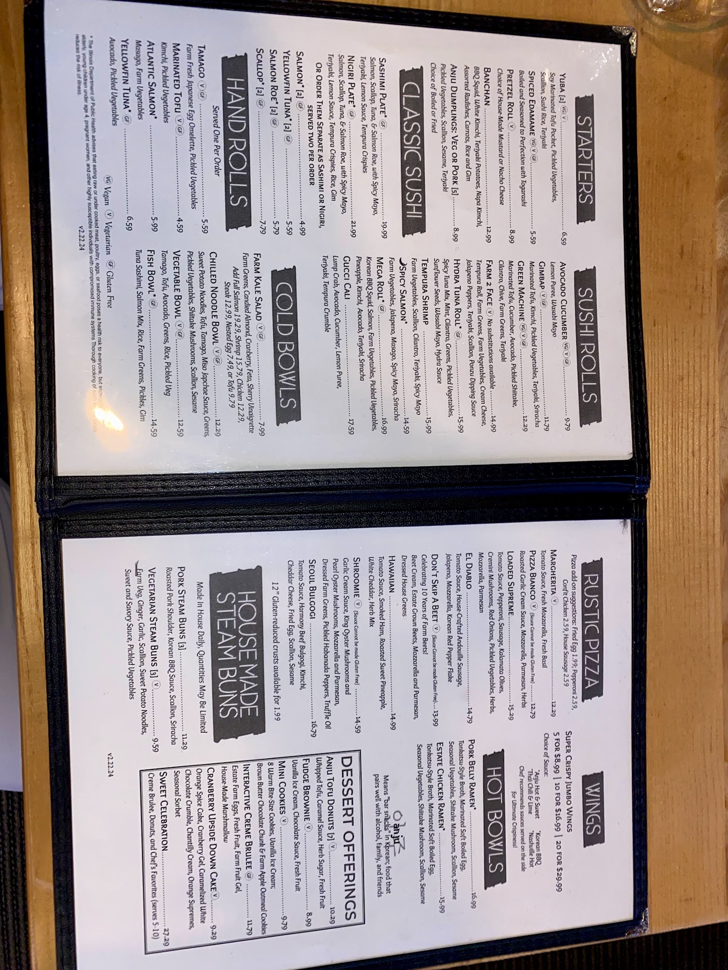 Read more-Update- Taking away one of the two stars we gave. I was really hoping for a better outcome. We decided to visit again on 1/23 to give Anju Above another chance. They forgot to make food for one of the people at the table. The waiter was nowhere to be found. The people at the table had reminded the person clearing the plates that one person was not severed her dinner. When the ramen was served the broth was room temperature and vegetables were way under cooked. As to not embarrass the person who would be eating alone, the table ordered donuts and coffee. When the waiter served coffee and donuts (which were very good) he left and never came back with cream and sugar for the coffee. We have never had this at any of the other Epiphany Farms Restaurants just Anju Above. Twice we have been to this restaurant and twice they have failed. I hope you can turn this around but it will be a long time before we re-visit Anju Above.
