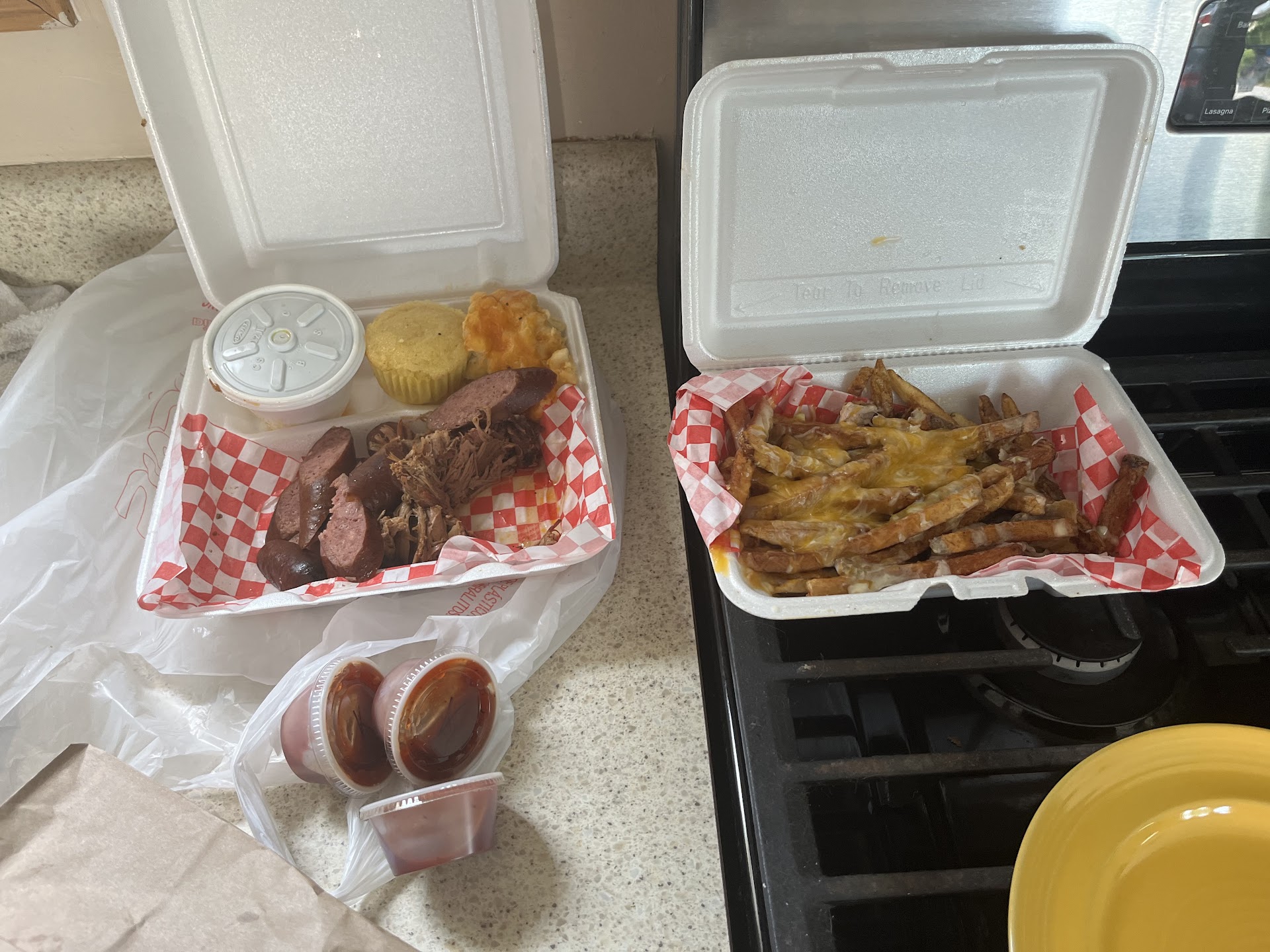 I agree that the sausage had the most flavor of everything I ordered (except the tangy bbq sauce that was really good). I also agree with other reviews that some may find this to be the best bbq in town because we don’t have any other bbq places in town. I was more disappointed by the small portion sizes of everything else more than the fries but I can understand the portion of fries being mixed given how busy it was, it happens. I did receive my sodas after reminding the cashier which was no problem. I’m happy I tried Annie eats but it’s just not for me. I appreciate you taking the time to respond to my review and offering to correct the fries I value that level of customer service and have adjusted my review of the service to 4 stars due to...