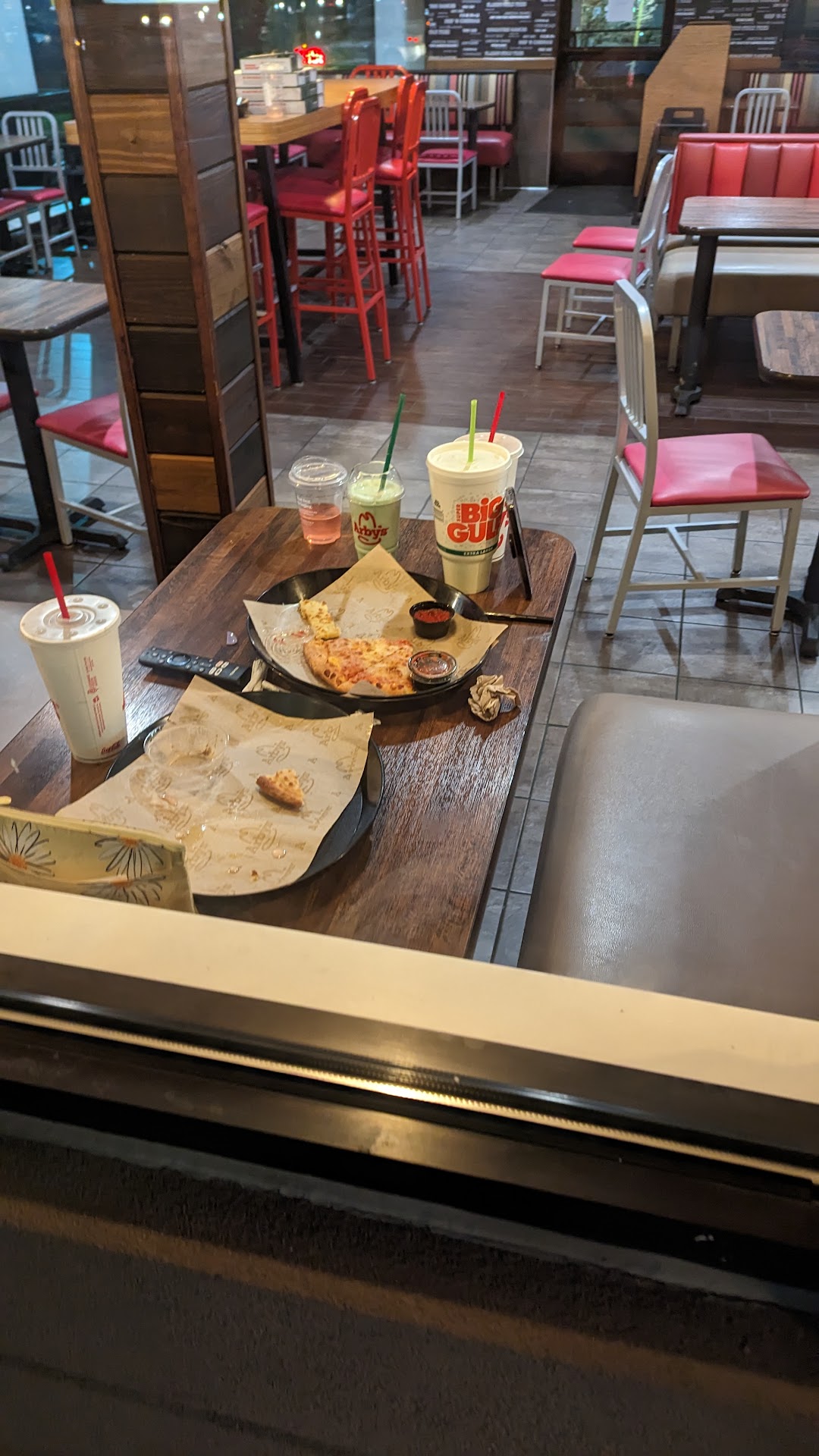 Read moreMyself and my girlfriend pulled up to the drive thru at 10:10pm . We had googled the closing time for this location prior to stopping. Google said they closed at 11 pm. We sat at the drive thru for 5 minutes with no contact or response from inside the building. I had noticed several vehicles in the lot and people inside when we pulled in, so I backed up and parked my truck. I walked over to the entrance and seen that it was locked. so I knocked on the door. A woman ( non employee appearing) looked at me after I had knocked and then looked away from me ( ignoring me). so I walked over to the window to where I could see inside the lobby. There were 2 young kids crawling all over the tables and booth dividers. There was pizza and 7/11 cups on a table. I knocked on the window again and the lady looked at me and then looked away again ( I was less than 6 ft from her and had knocked pretty hard). There was an employee behind the counter cleaning who appeared to have no knowledge of me being there. I work in retail management, so I know there is a way to look up sales by hour at this location. I'm sure it's quite low after 9pm ( only sales come from friends and employees from within the building). if there aren't sales, I bet there are several declined orders (theft). I got back in my truck and found pleasant service at the taco bell...