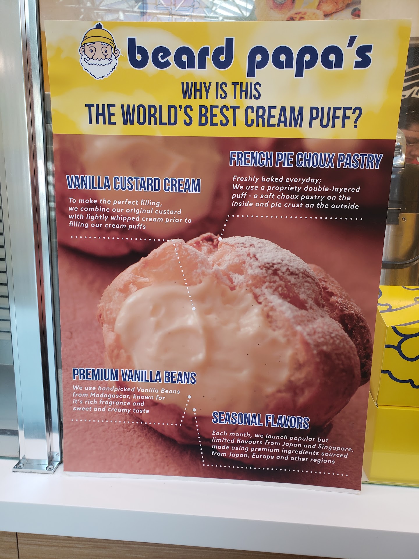 Beard Papa's is a delightful bakery known for its mouthwatering cream puffs. As a lover of sweets, I couldn't resist paying a visit to one of their locations, and I must say, I was not disappointed.