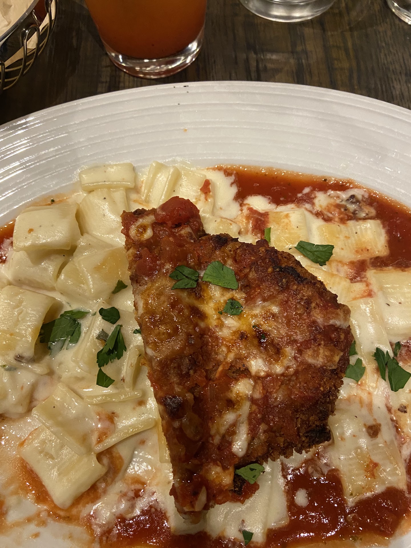 At our server's recommendation, I had the baked ziti. I haven't had better anywhere. Shrimp, chicken, onions, creamy lobster sauce (and other stuff!), blended perfectly. My husband had the lasagna and chicken parmesan combo. When I tasted the lasagna, I thought, "Oh, that's what lasagna's supposed to taste like. Now I know."