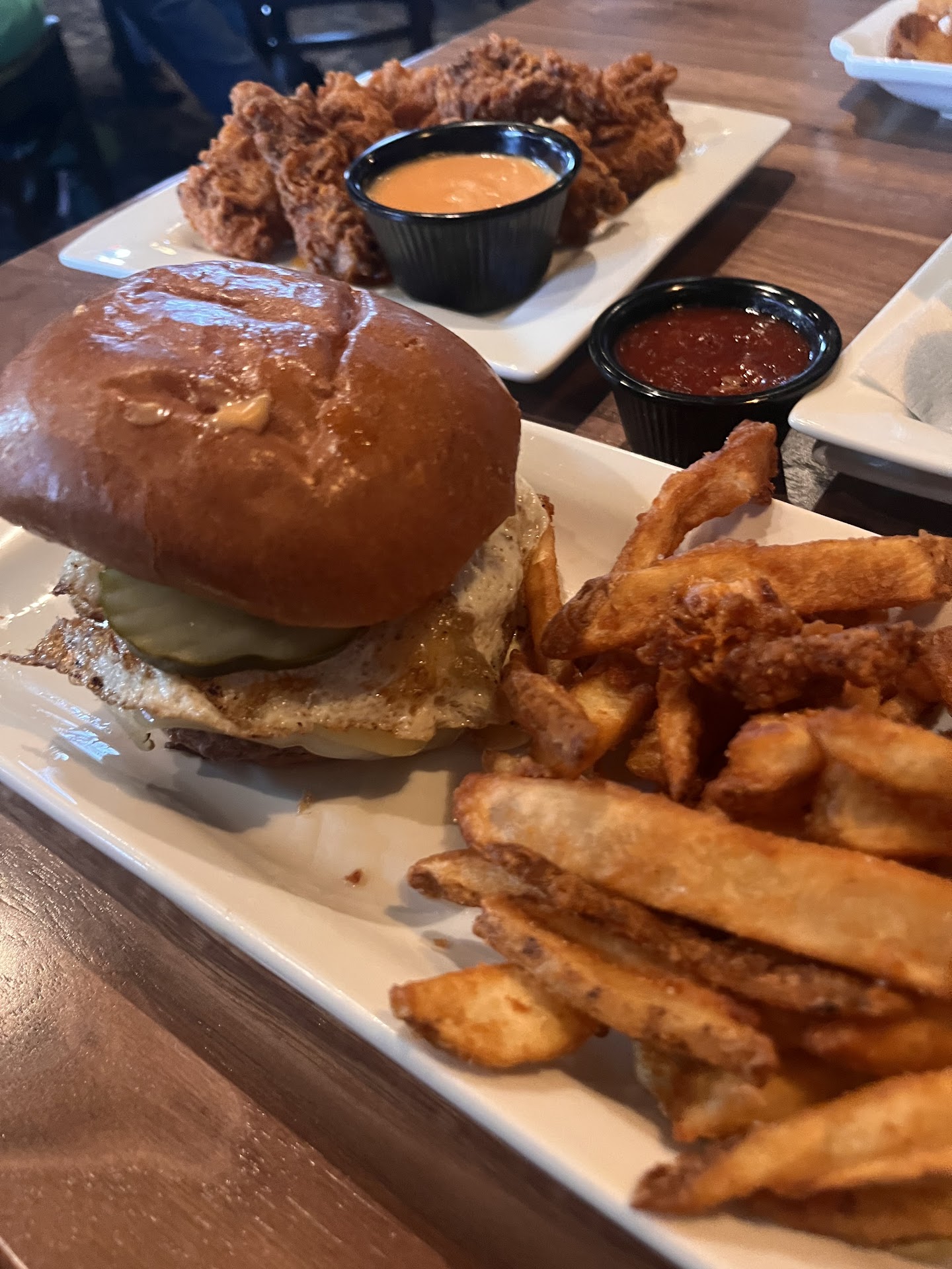 Read moreToday was our second visit to BRU Bloomington and we had better burgers this time. The milk butter chicken tenders were so good; the batter was seasoned (to me a bit salty but my partner found it okay) but not thick nor dense. Probably the best in town. I had the bison burger which was delicious with a hint of blue cheese (no cheese curbs tho). The bison patty was a bit dry but still okay. The mayo sauce did not save the dryness; rather it made the burger just slightly greasy. He had a double bacon burger and we both liked it. In the last visit I had a lamb burger which I preferred over the bison even though the bison patty was thicker/bigger. The mushroom and Swiss burger was horrible. SO salty. We did not know if it was cooked by a different chef or they thought it should be that salty. The service was better this time; last time the waitress put the sides on the wrong plate. It's not a big deal but just a sign of lack of attention. Overall, we like this restaurant and our final verdict relies on the...