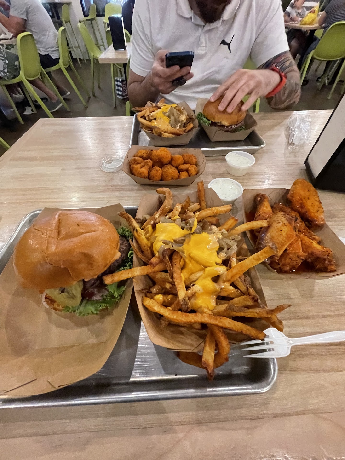 Read moreOur family visited Mall of America this past Saturday. We were nearing the end of our time there and feeling very hungry, so we arbitrarily chose a place in the food court based on their Google rating, and the fact that everyone in our family loves burgers. When we walked in mid afternoon it did not look very promising inside the restaurant. There weren't any customers except for a handful of bar patrons and the restaurant was in somewhat of disarray. I went to the bartender to place my order, as he was initially the only employee in site. She was very nice but as I started ordering he had to interrupt me to inform me of numerous things that they were out of. These were significant components to our orders too: Burger sauce, bacon, and the salad I was so looking forward to wasn't possible because they were out of lettuce! I was so tired that I decided just to make the best of it, rather than go somewhere else. Luckily they had numerous sauce options that all sounded delicious, it was easy to choose a replacement for the burger sauce. Instead of a salad I went with a half dozen wings. It was nice that they had that option where my small appetite. We sat down at a table and our food arrived only minutes later much to our surprise. When we started eating.. all of our potential regrets disappeared. Everything was incredible. The french fries were something out of a dream. They were home-fries style, the perfect combination of crispy and greasy, and had been sprinkled with a delicious seasoning mix. The bartender had recommended the truffle Ali for dipping, and he was on the money. All four of us agreed that we could have eaten it with a spoon. But the burgers oh my gosh the burgers were the real Superstar here. They were simply incredible! I'm so glad that we stayed and gave this place a chance we'll definitely be going back and hopefully next time they'll...
