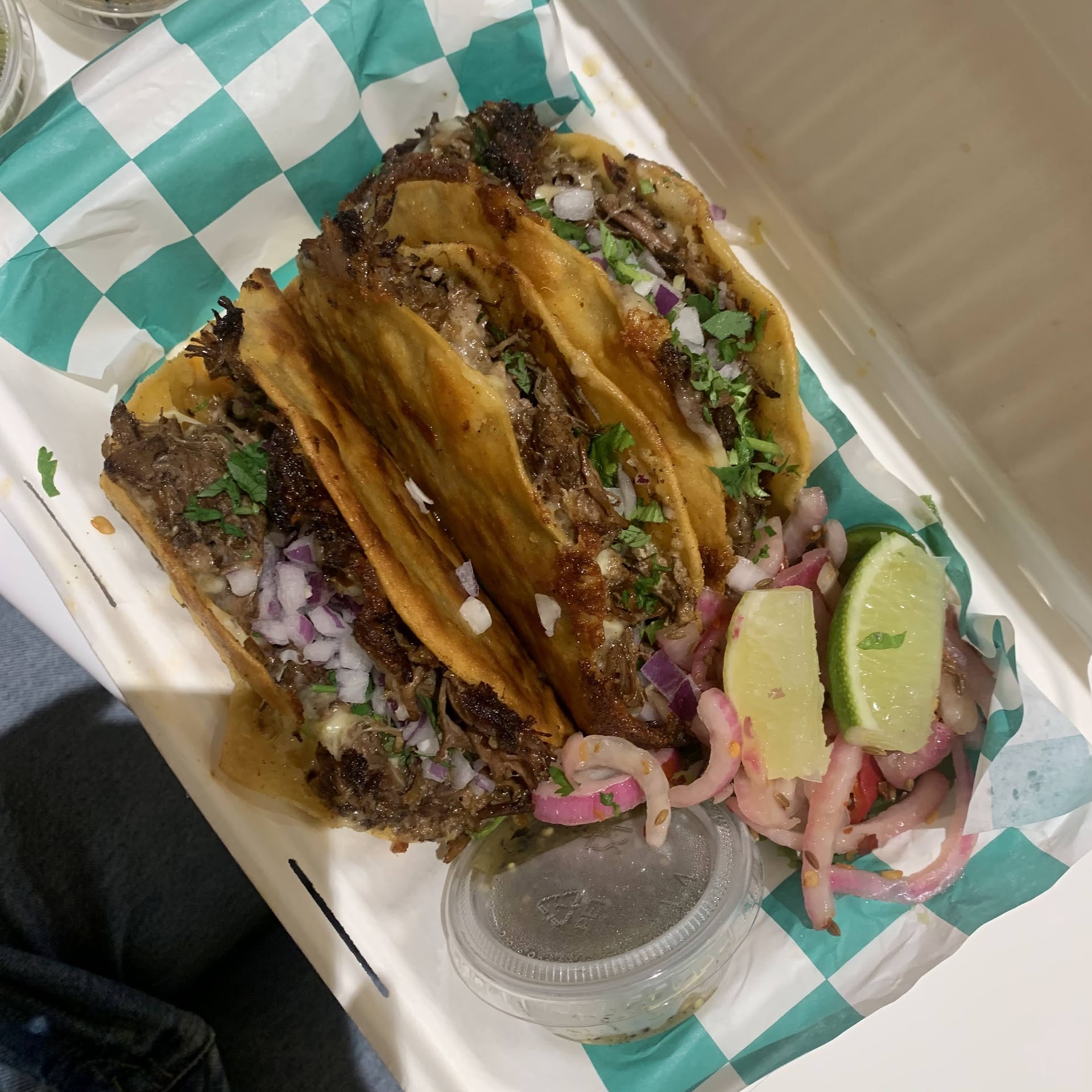 Neither of us have had birria tacos before so we can’t speak to its authenticity but we really enjoyed them. I saw review with their taco was very flat but ours were not like that at all. Ours were actually quite stuffed and I could have done with just one taco and the chips. My wife who is from TX also said that the beef taco was very good and similar to street tacos she has had down there. The chips were okay not really anything to write home about though. Bonus points for the salsa lisa though.