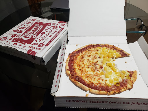 2pm: food finally arrives, 2.5 hours after I placed my order. Open the box, and it is not the pizza I ordered. I had asked for white sauce, and got red. The delivery driver didn't stick around for me to sign my receipt. I was planning to tip him, despite the above. I know gas is expensive, the weather is gross, and everyone is short staffed