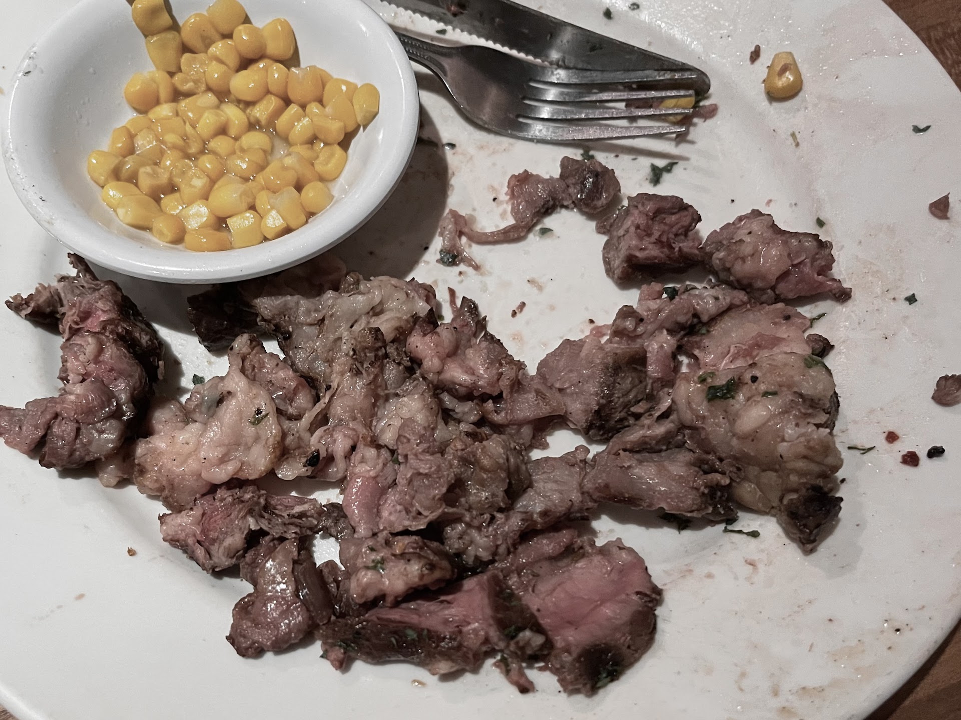 The croissants were incredibly dry and burnt, the food arrived and they gave me the wrong cut of steak (t-bone instead of ribeye), both steaks were well-done as opposed to medium rare and the two sides on both plates were not in separate dishes so the steak juices were all over the sides. The broccoli casserole was dry, the carrots were undercooked.