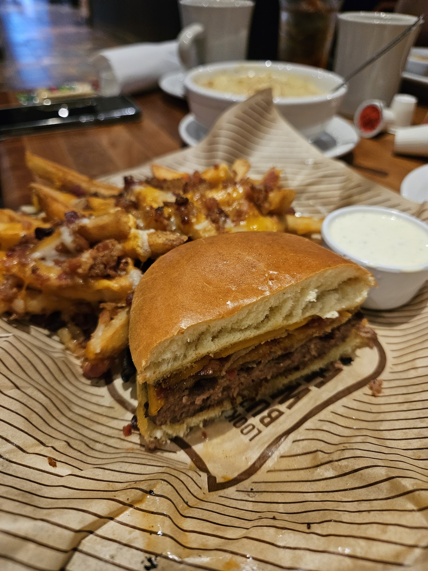I get home slightly annoyed, by the slight feeling of being merely an inconvenience at least, but find that some of the order was wrong or missing. We'd paid for an extra dressing for my roommates' salad, and paid extra for one of our side items to be bacon-cheddar fries, which they are not. The food had clearly been sitting, unlike she said it "wasn't", as it was rather cold and lackluster, not the usual we'd gotten from this establishment.
