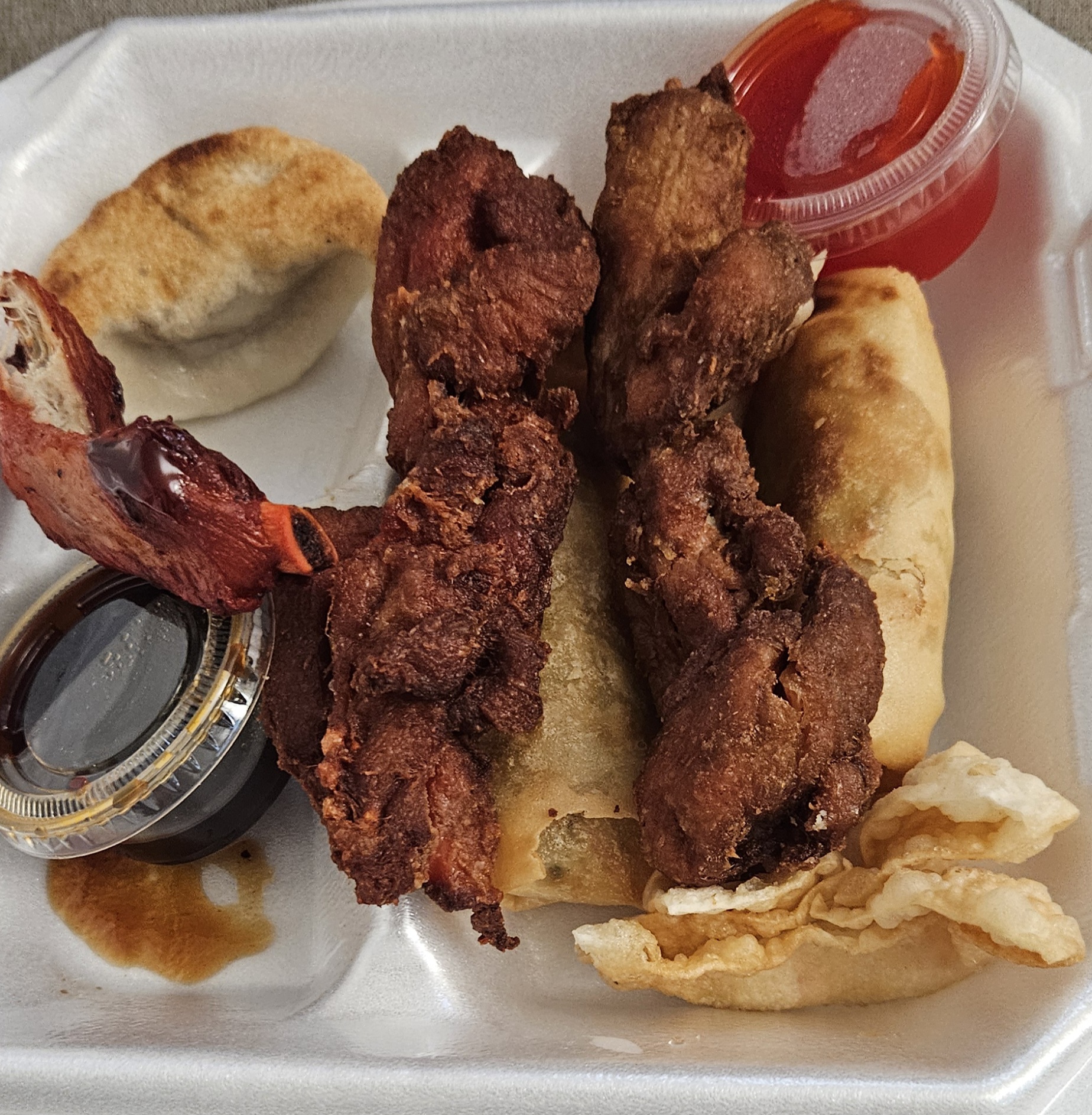 Read moreMaybe we got our hopes up with the sampler platter. We started with the sampler plate which was incredible. The crab Rangoons were delicious, the dumplings were the best with a hint of honey, the chicken skewers were melt-in-your-mouth tender. The ribs were super dry so we left those. They did have a nice sauce but like eating cardboard. I ordered the Chinese bacon and tofu based on another review. The presentation was nice and visually appealing but the flavor was non-existant. SO bland. The only flavor was the brine from canned bamboo shoots which caused the entire dish to taste somewhat bitter. The vegetables were chewy, freezer burnt and overcooked. The meat and tofu were perfectly cooked so it's such a shame the dish wasn't worth eating. Im not sure how tofu could be so flavorless. Same issues with the lo mein and general tsos, no good flavor. The chicken in the general tsos was old and hard. The lo mein was dry and bland but the shrimp was good. Great appetizers, horrible entrees, great portions. I'd recommend getting only meat dishes or appetizers as they were great. Unsure if I...