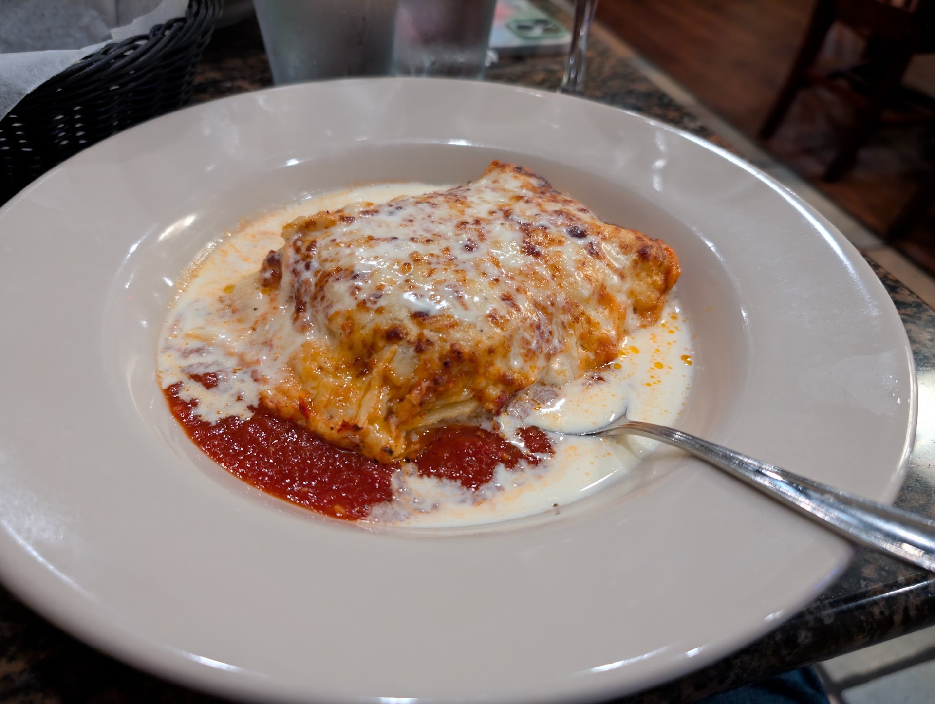 I paired it with a glass of their house Chianti, which was smooth and full-bodied, a perfect match for the richness of the lasagna. On the lighter side, we also shared the DeAngelo's salad, which had crisp greens, flavorful kalamata olives, and a refreshing vinaigrette that cut through the richness of the main dishes.