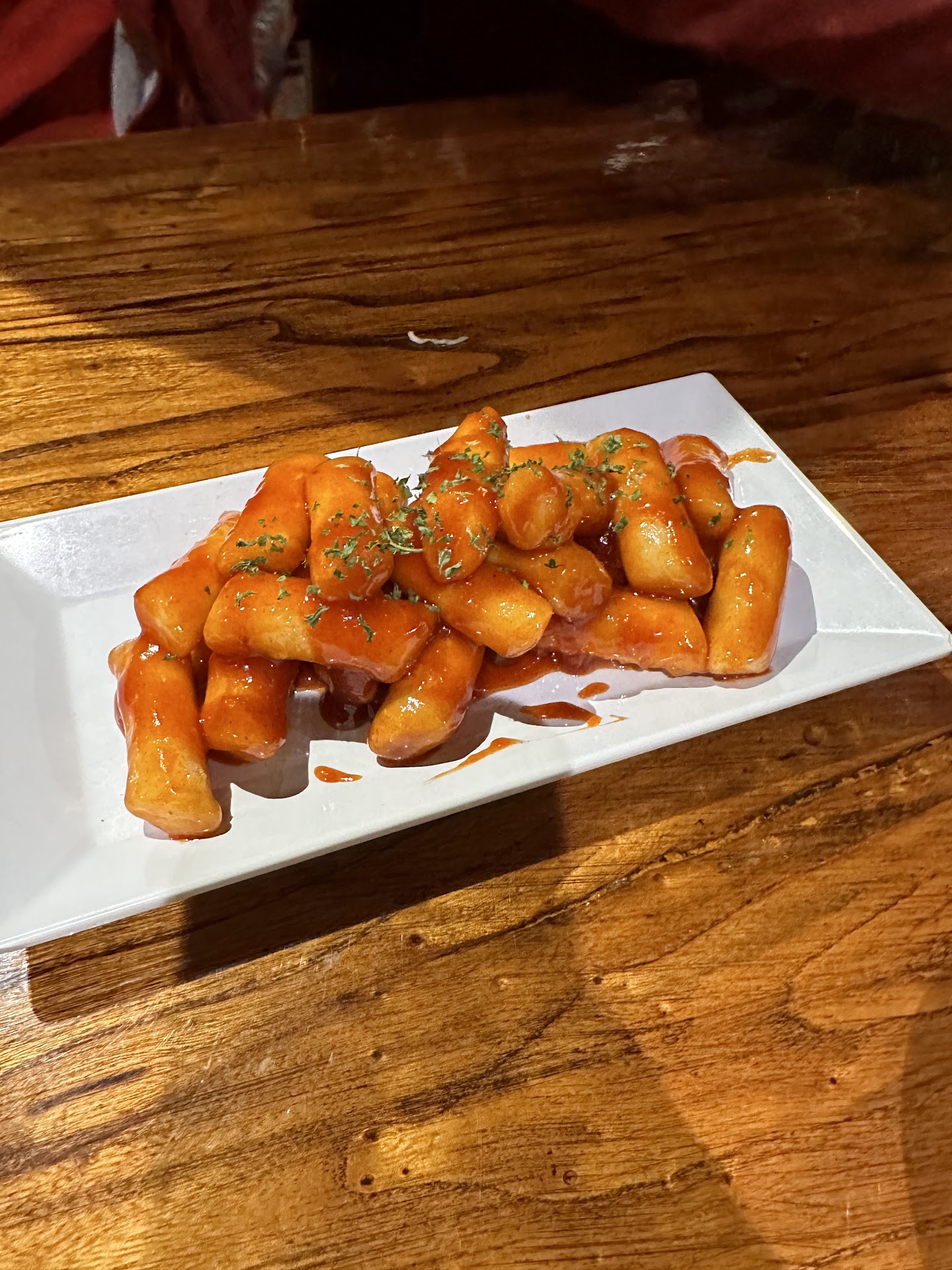 We started with the ttuk kko chi which were rice cakes covered in a gochujang sauce. The cakes were crispy on the outside but soft on the inside. The sauce it was in was amazing, balancing the heat from the gochujang with some sweetness. Next, we got the Korean fried chicken (they were out of KFC wings). I remember the sauce being a little more red last time, but it was still good. Super crispy exterior and no excess batter so we just tasted the juicy chicken. The two entrees we got were the spicy chicken and jaeyuk. The spicy chicken was flavorful and tender. Along with the chicken, the veggies were stir fried nicely and coated in the broth. The jaeyuk was a little better with the pork having a great marinade and also being super tender. On top of the food we ordered, we were given a salad, soup, and rice which were all nice accompaniments.