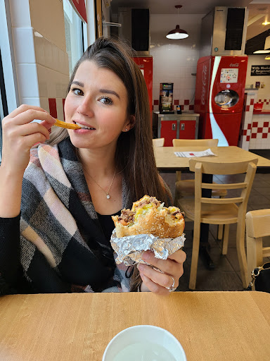 Read moreFive Guys Burgers and Fries has wonderfully tasty burgers that do not force you to take toppings you may not want. The fries and burgers are so big that I recommend the small fries (or sharing a regular with someone) and the Little burgers; just as tasty and as big as most other burger joint burgers. The soft drink machines allow you to pick a huge variety of flavors from full to light to zero calorie drinks. The big down part of the restaurant is how incredibly noisy it is; after eating in once we now just get the food to go. You can order online but they will not put your fries in until you get there so you really do not save any time at all; I can't recommend doing...