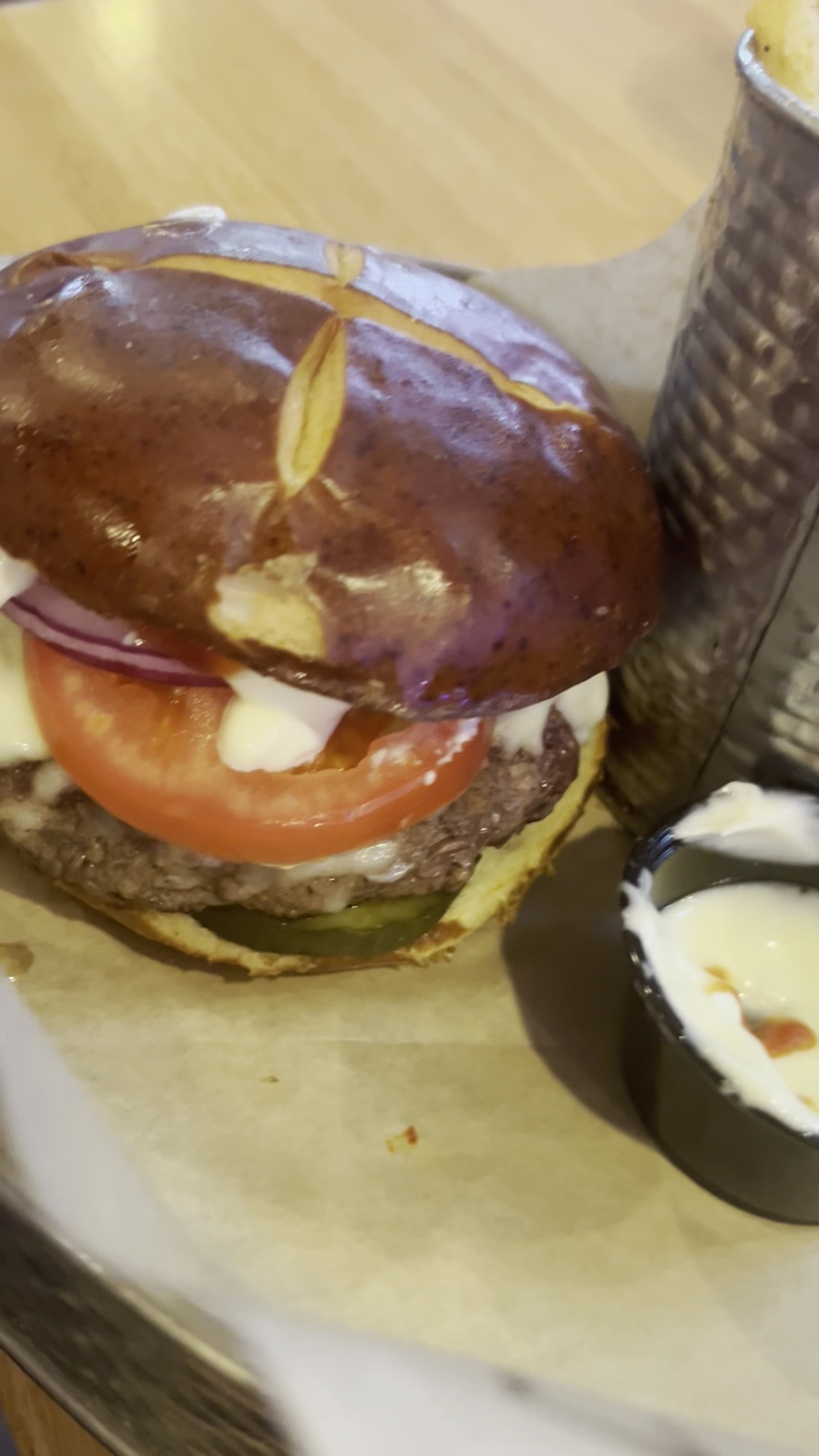 Read moreUpdate- I reached out to them and I came back today. Overall, the service was way better by a lot ! The food just as expected, hit it out of the park again! As expected, my husband loved the build your own burger. We had the truffle fries and sweet potato fries, and they are amazing. The burgers are mouthwatering and so savory. We played some games and it was a lot of fun! The only concern I had this time was when I went to the bathroom a worker was spiking and blew smoke in my face. I notified management and they said they would follow up. They also followed up with the waiter we had issues with before so hopefully the service will stay great like today! It was a very fun and welcoming environment. We will 100% be back ! Review moved from 3 to 5 stars!