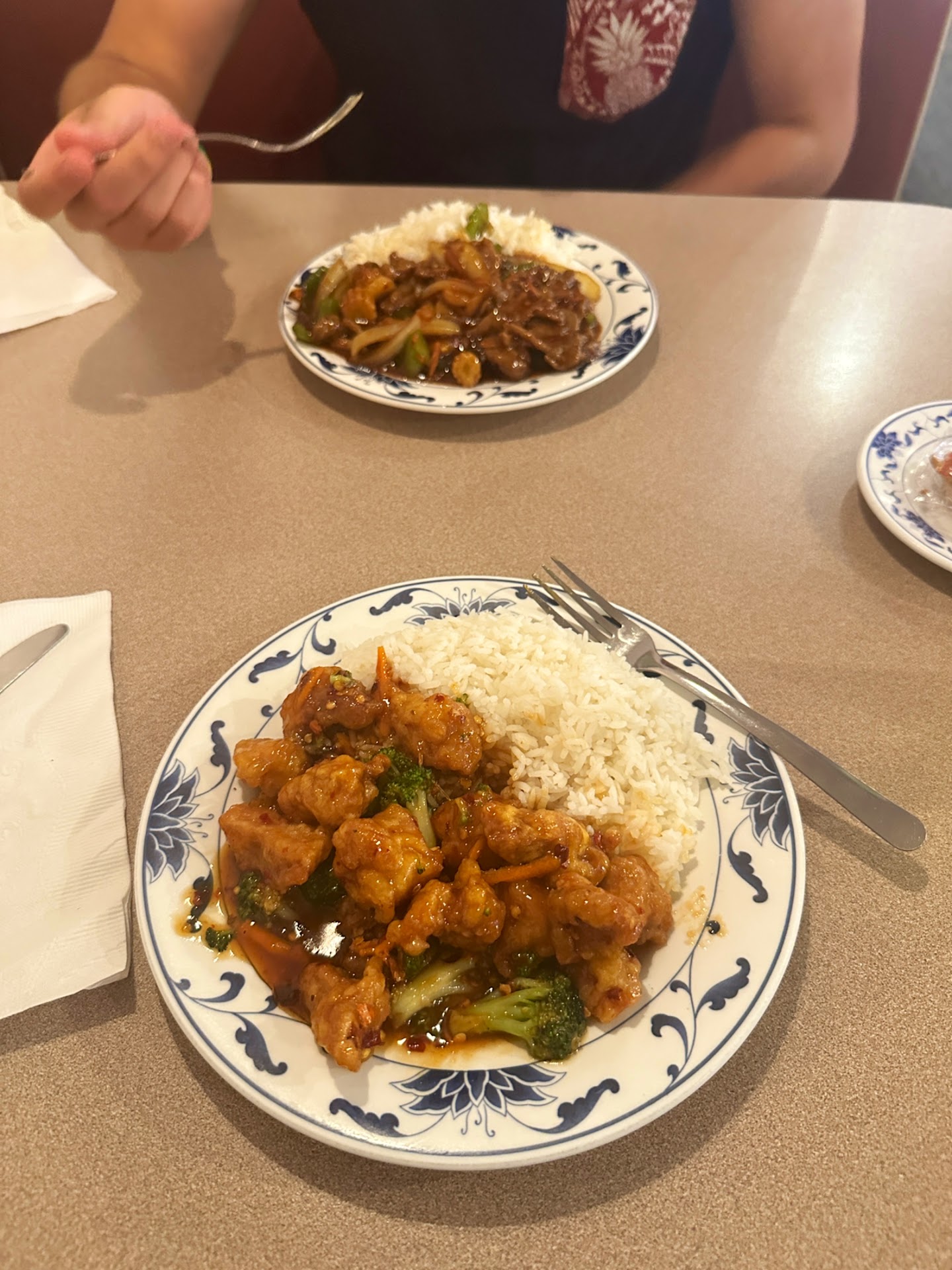 When we got there we looked at the menu as you order at the front and ordered the Hunan Beef and General Tso’s Chicken. Both dishes came with rice and a fortune cookie and we paid about 3$ for each of us to get a drink. The owners seemed to be an older Asian couple and they were so kind and brought the food out promptly.
