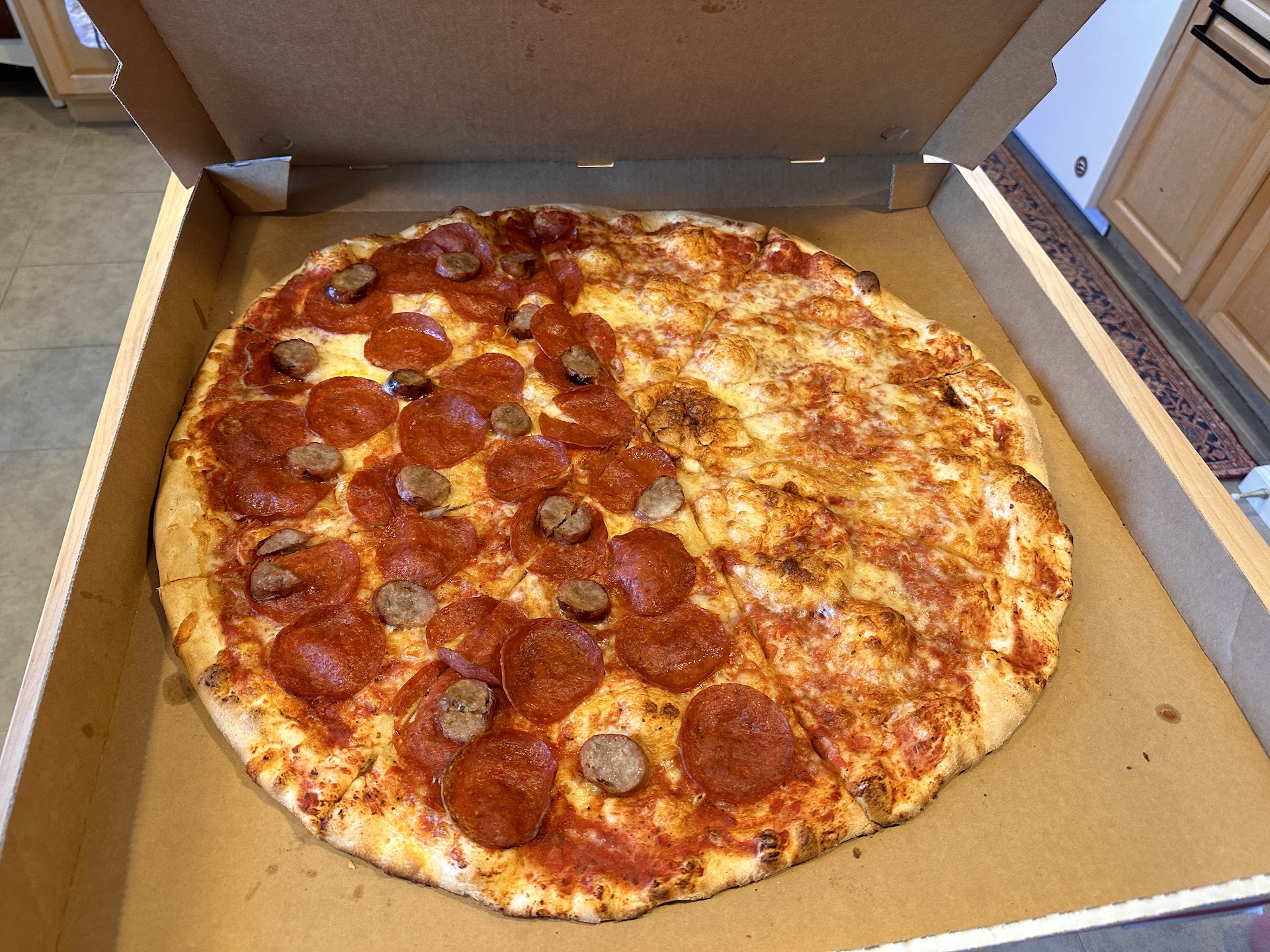 My family and I like to rate pizza with three criteria; 1. ease and accuracy of order, 2. pizza durability - how the pizza taste fresh, cold, and reheated, 3. ingredients and portion. ease and accuracy of order - Ordering online was easy once we figured out how to create an account; the font color was dark and hard to see with the dark background of the website. We ordered a pickup for a 22" pizza, half pepperoni and sausage, and the other half double pepperoni; with 2 arm sized bread stick sides. Parking and getting to the restaurant wasn't that easy due to it's location next to the college. Once in the restaurant, pickup was fast and easy. However, when we got home, we realized the order was incorrect. Half the pizza was pepperoni and sausage, and the other half was cheese. We tried multiple times calling the store with no answer. Sent a complaint through their website and still have not had a response. pizza durability - It took us a hot minute to get back to the car and drive back home, which by that time the pizza was no longer hot, so we cannot rate on the freshness test. That would lead us to the cold test. Crust was dry, hard and felt like gnawing on a piece of cardboard. We then reheated the pizza, one in a microwave and another in a toaster oven. Both softened the crust a little, but still dry and wasn't pleasant to eat. ingredients and portion - Sauce was very thin which probably made the pizza taste and feel dry. For the half of the pizza that did have ingredients on it, pepperoni and sausage; pepperoni taste was good, fair amount throughout; sausage was a cut link sausage that tasted good, but there was only three to five small pieces per slice, which are huge slices. The small portion of sausage made us wonder if the pepperoni amount was our double pepperoni amount we ordered. We will never know. Overall, experience and pizza wasn't that great. Update: raising to three stars. They did reach out to us today to correct our order. We will give them...
