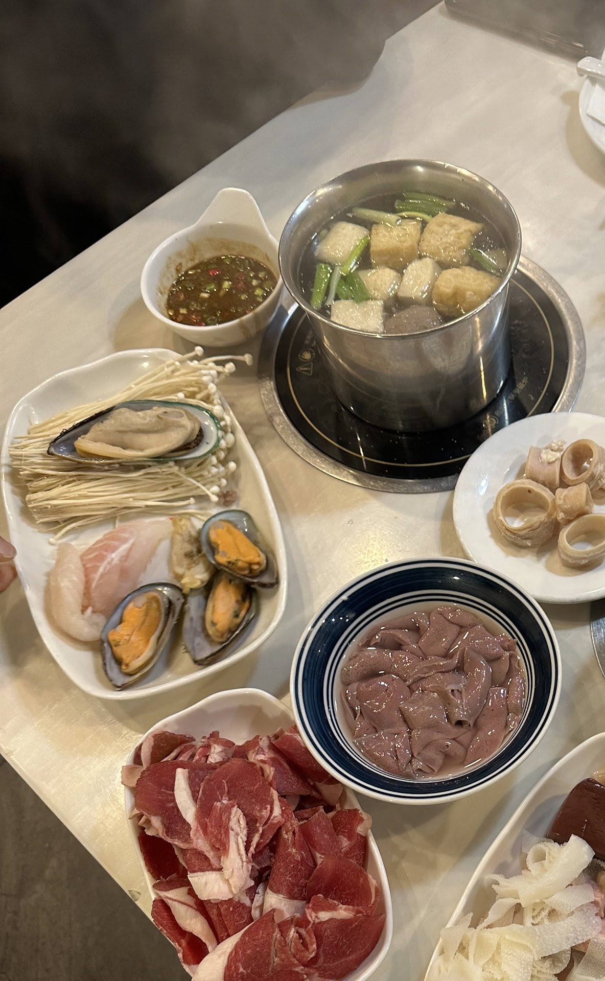 For ~31$ a person including a drink, I would recommend this spot as a great place for a unique dinner date. It is fun to order ingredients served family style, then make your own dipping sauce, and then cook food together. A great bonding opportunity.