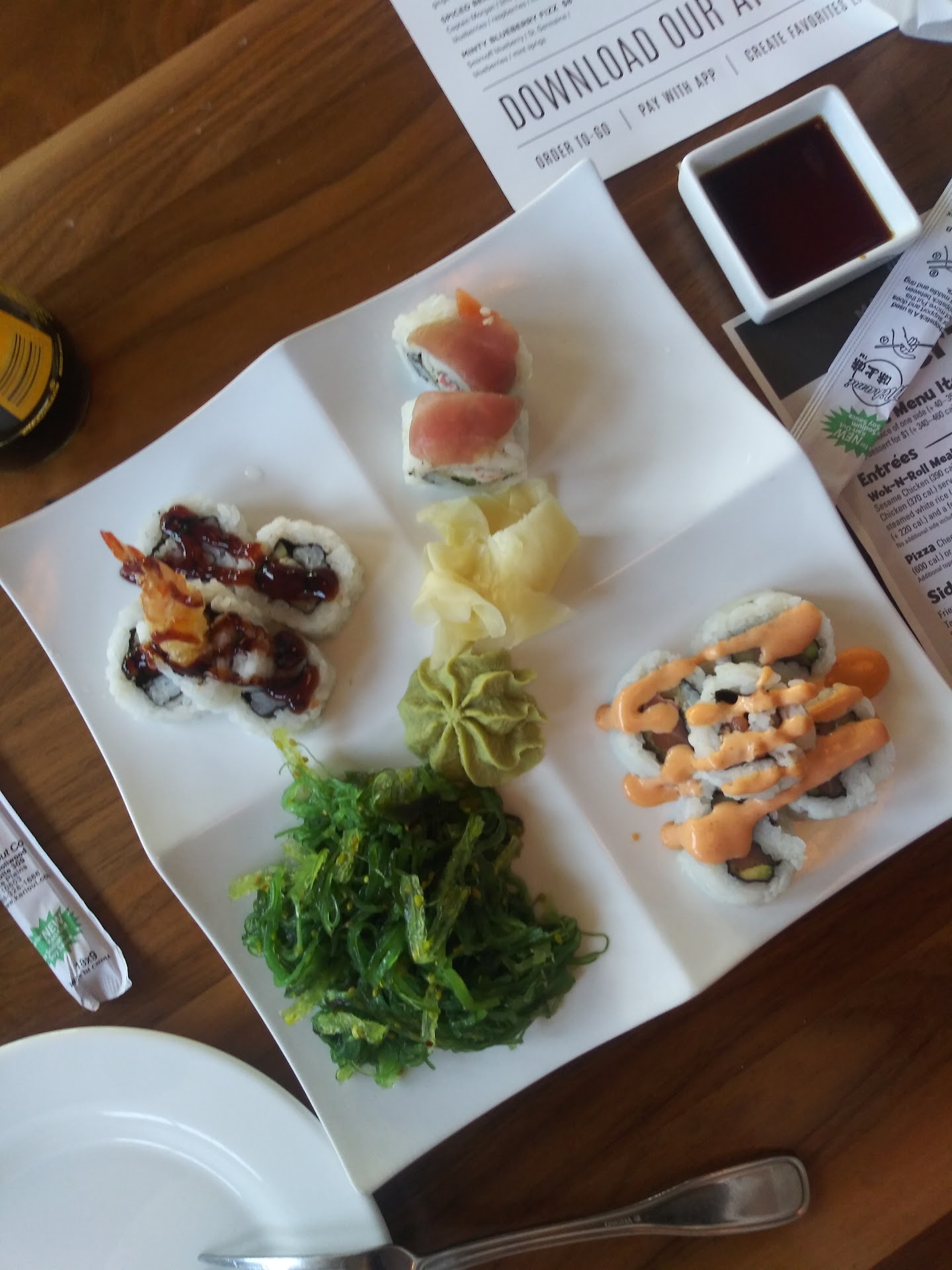 Read moreWent the the Market Grille with my family today. I love their sushi but thought I would try something new. I got the pad Thai. It was $14 and it was probably one of the worst things I have ever had at a restaurant. It was slimy, the whole thing. The noodles were over cooked, the chicken was mushy, and it was swimming in sauce. For $14 I was expecting a lot more. The waitress told us the specials but she failed to mention that it was unlimited wings. My husband would have loved that and when he found out after placing his order she told him it was too late to change it even though she neglected to tell him and didn’t seem to concerned about it at all. Instead he had a subpar burger that was over cooked. Our kids both loved their meals so that was a plus. They even come with dessert which the kids loved. I used to love the market grille but the food has really gone down hill. For $14 a plate you really expect better food than what we received...