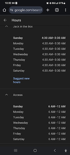 Read moreNever in my life did I have such poor service and attitude from someone over burgers that were made "fresh" I had to ask for a 2nd opinion and had someone else try my food that I ordered I asked am I trippin? Or does it taste weird she ripped off a piece of my burger and gagged and spit it out. I called and told the employees at this location that it tasted not fresh and rotten and they said they would give me new burgers but I no longer had the appetite to get the same jr bacons which I bought 2 because I no longer trusted the patty meat in it I asked if it was possible to just get 1 chicken sandwich and she said no and gave me the same thing and it still had the same problem and I had to waste money and food and also get a rude employee which is very sad. Never eating from another jack in the box in my life that was...