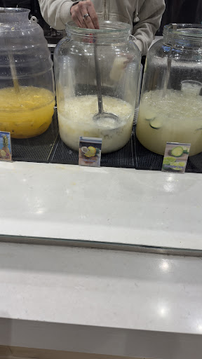 I’ve never been to this place so I asked for any popular drink recommendations and she gave three options. Watermelon, passions fruit and blueberry Mojito. Asked for the blueberry mojito, to my dissatisfaction it wasn’t really for me. It tasted like watered down lemonade-lime drink with blueberry pieces at the bottom. Went back to the register and asked to buy a different drink, they asked me if everything was ok and I told them my honest opinion that the drink wasn’t too my liking and that I’m ok with buying a different flavored drink. The women was completely nice said she could replace the drink at no extra charge since I hardly touched it. Switched out for the Passion fruit and my my was it delicious! Very bold and sweet flavor! The color itself made my mouth water and the passion fruit pieces were a delectable touch! Highly recommend places for a fruit...
