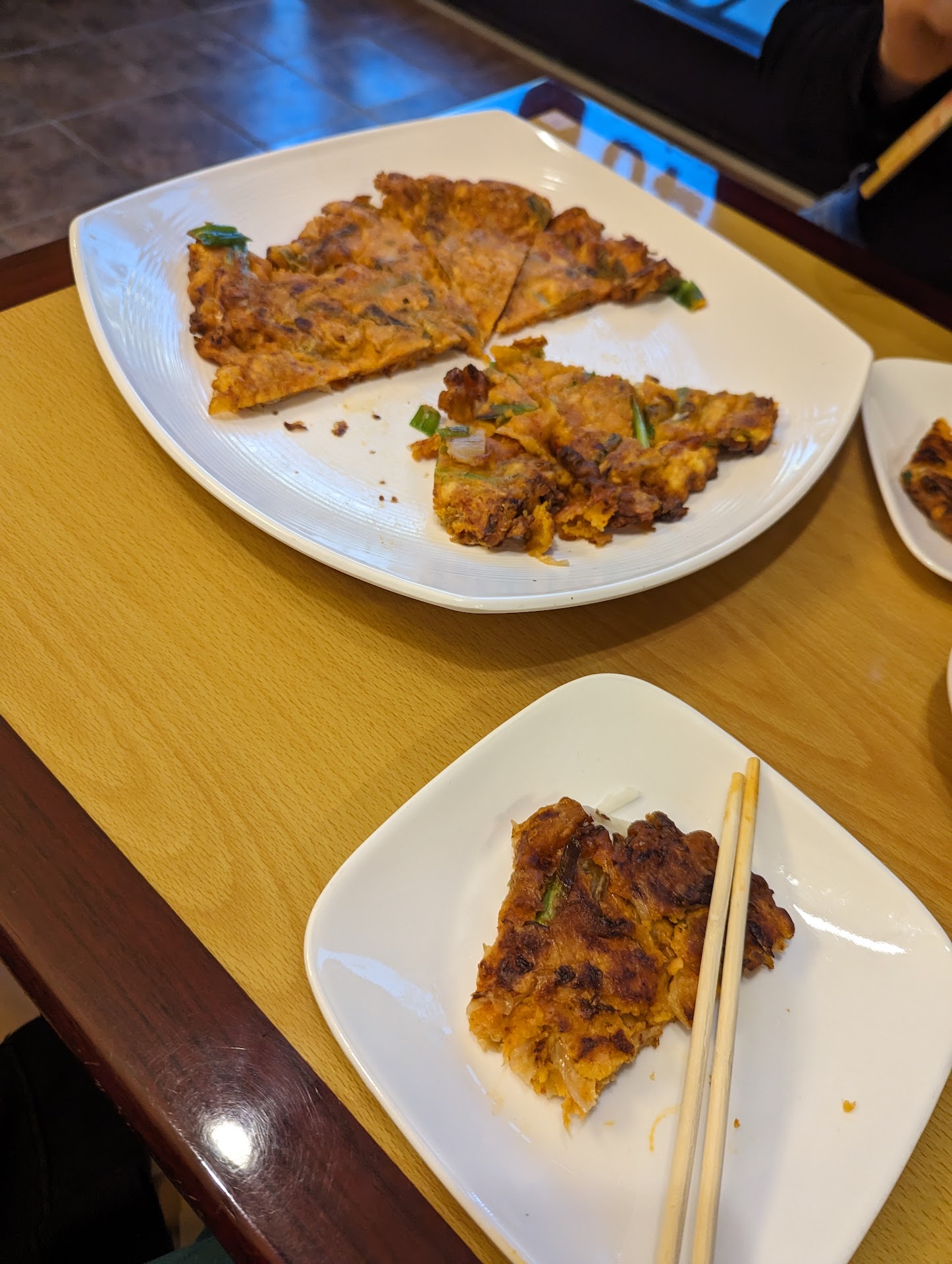 I had a fantastic experience but felt I left a bad impression so I wanted to leave a review! I was in Bloomington for the day for work and stopped in to eat before leaving town. I was so excited to find a Korean restaurant that wasn’t kbbq (no offense we love kbbq but it’s difficult as a vegetarian.) I ordered kimchijeon (kimchi pancake) and japchae (potato glass noodles.) Firstly, the portions were very generous. I was intimidated by the size of the kimchijeon but it was so delicious I had to stop myself from eating too much so I could enjoy the rest of my food. The banchan were delicious. They were kind enough to modify the japchae to come with tofu instead of meat. The noodles had the satisfying starchiness and the tofu was amazing. I hated to leave anything on my plate but I ate until I physically couldn’t anymore (and then some.) When I didn’t want a box, one of the staff asked if I didn’t like it, which couldn’t be further from the truth! I knew the leftovers wouldn’t fare well on the hour drive back to my hotel, otherwise I couldn’t have left it behind! I appreciated the staff’s kindness and concern with my experience. It was exactly what I’d been craving for weeks. I hope to be back in Bloomington soon because I will be dining in again. I highly recommend 💗