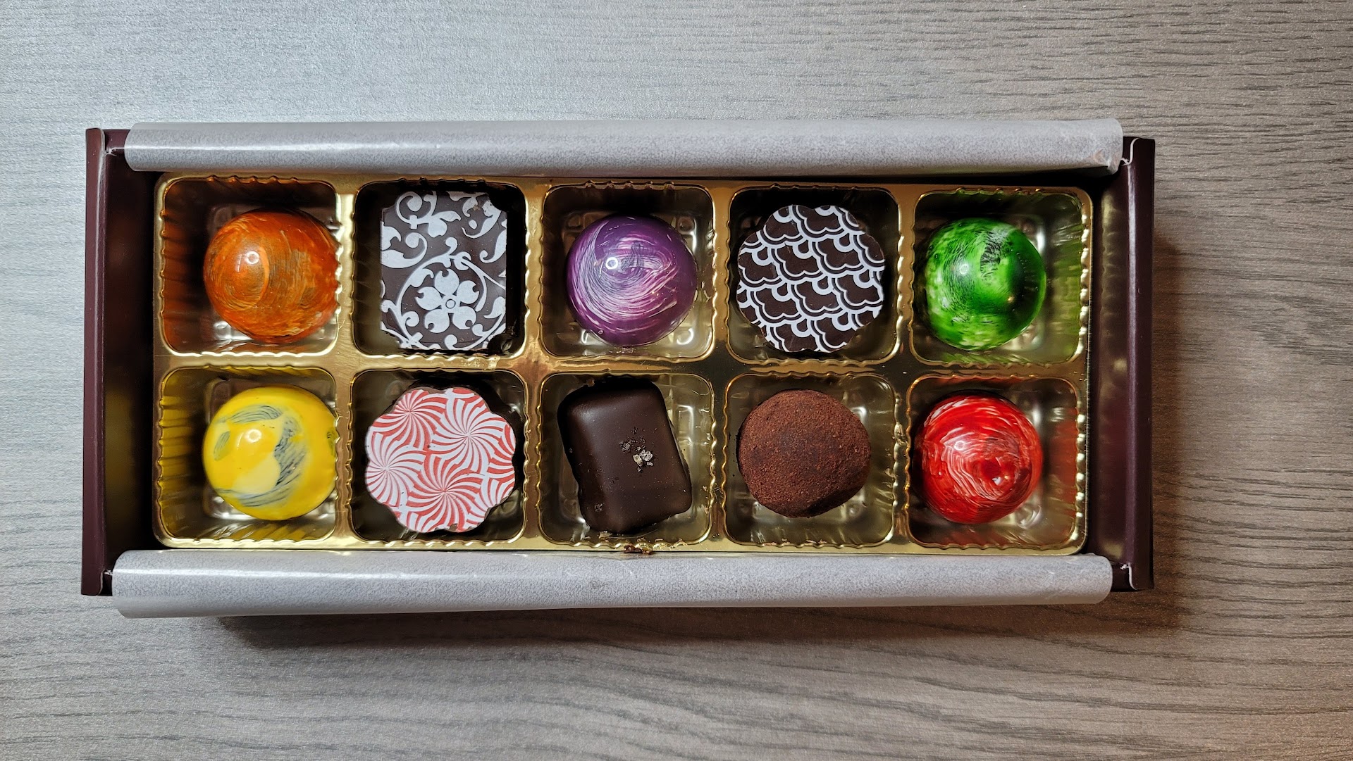 Read moreAll I can say is WOW!! I've had cupcakes from this bakery before that were 🔥🔥🔥 After enjoying a delicious lunch with one of my best friends I decided to stop in here and grab some of these delectable chocolates. It was very difficult to decide which ones to get as they have a lot of options. I went for the 10 chocolate gift box (though the gift is for me 😎). They are not cheap, but I really wanted to try these, particularly because they have such a unique choice flavors. They gave me a free chocolate since I had so much trouble deciding which chocolate to choose for the last one. Also, if you bring your box back in the next time they will give you a free chocolate. Meaning if I bring my box that holds 10 chocolates in and buy 10 more I will get 11.