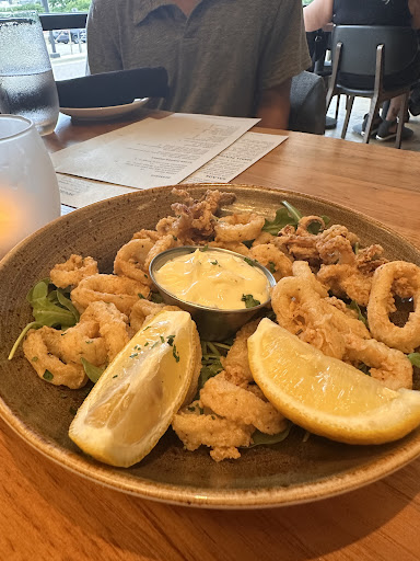 We split a regular calamari appetizer while waiting for our RW menus. I had the braised short rib, while the tricolor carrots and mashed potatoes offered some flavor, the 'braised short rib' was devoid of it. It really needed some seasoning or salt, there was none at the table, so it was very bland. Everyone that had this at the table agreed it was very mid, flavorless, literally tasted like a crockpot recipe I could do at home, and I am not a cook whatsoever. My friend Lindsay ordered the sword fish and it was TERRIBLE, possibly the worst fish entree I've tried in years. The fish was unbelievably fishy and spongey, it gave off frozen fish steak defrosted in the microwave vibes. Also there was no cauliflower puree to speak of, mostly just clam velouté, the spring vegetables were abysmal. There were a handful of peas and a couple of asparagus tips in white sauce. Not an impressive dish, should have never been added to the menu, quality appalling.