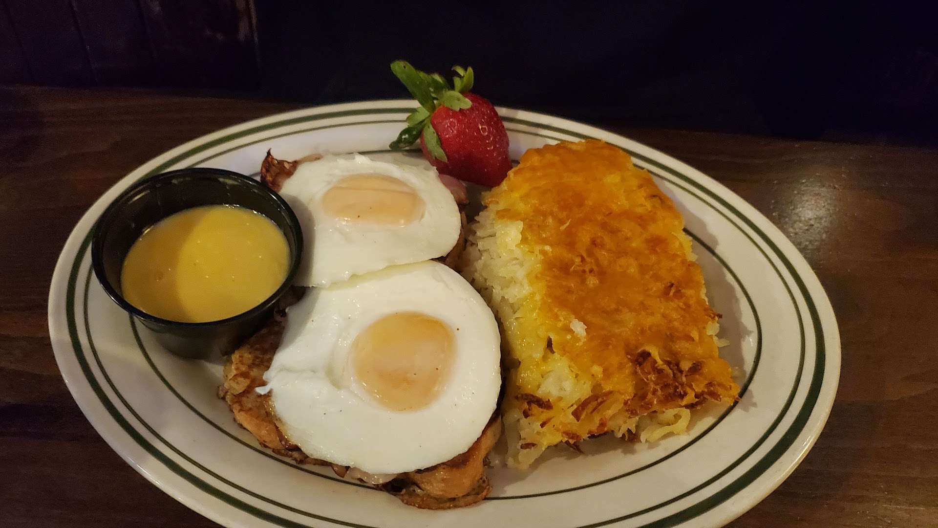 Read moreStopped before heading to the airport. I loved the Monte Cristo! Fries were a bit lack luster and unseasoned, but they forgot my ranch so the time I got that they'd been sitting a bit. But the sandwich was fantastic! Batter fried vs French toast type bread. Good flavor with more meat than I was expecting (and good quality). Lots of powdered sugar. French toast Benedict was good (maple hollandaise on the side) yet if that was a poached egg I learned something new today. Ha But the sunny side up medium hard egg sure made the dish look visually appealing! (Ate all of it!) Cheesy hashbrowns needed salt, but they were flavorful outside of that. Little cold. Bloody Mary was solid, and I saw they offered a bloody flight on the menu. I hope to try that next time. We had to get up and steal silverware and utensils from another open table to eat. Weren't offered refills or another round of beverages. Server was probably just busy... Lots of parking. There was some construction in the area so getting there was a little different. But nothing that was a show stopper. We weren't asked for a seating preference: they had open booths, tables and bar seats. They put us in a booth in the corner, so I cant really speak to what the place looked like. Popcorn they served us while waiting for food was really good, too! I would go back for that and the...