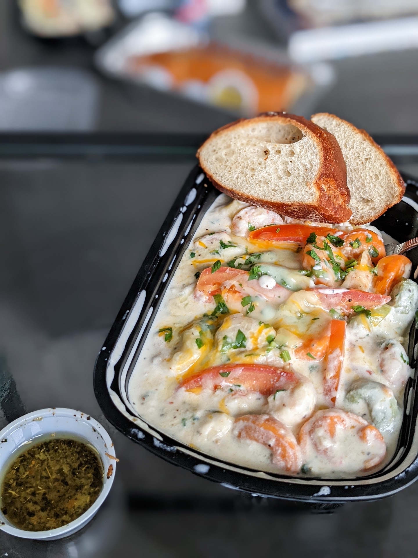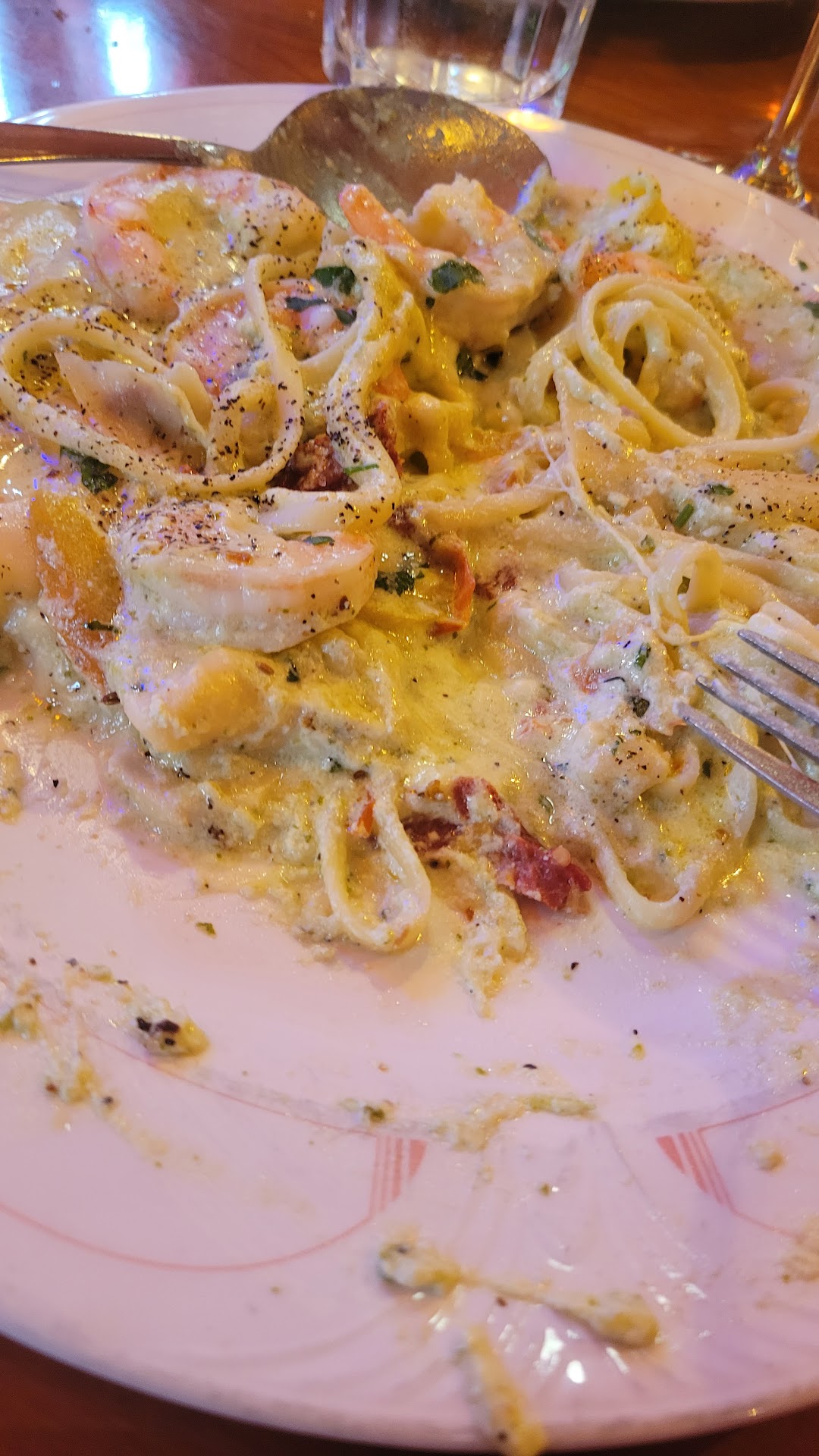I ordered the "seafood pesto" pasta. When it came it was is like this soupy mash of like fats, cream and cheese, with like defrosted shrimp thrown in. Honestly, it was disgusting in consistency, fatty (like eating pure fat and grease), but somehow without flavor. There isn't even salt and pepper on the table, I requested some, it didn't make a difference. Other dishes on the table were very bland, but not as bad as mine.