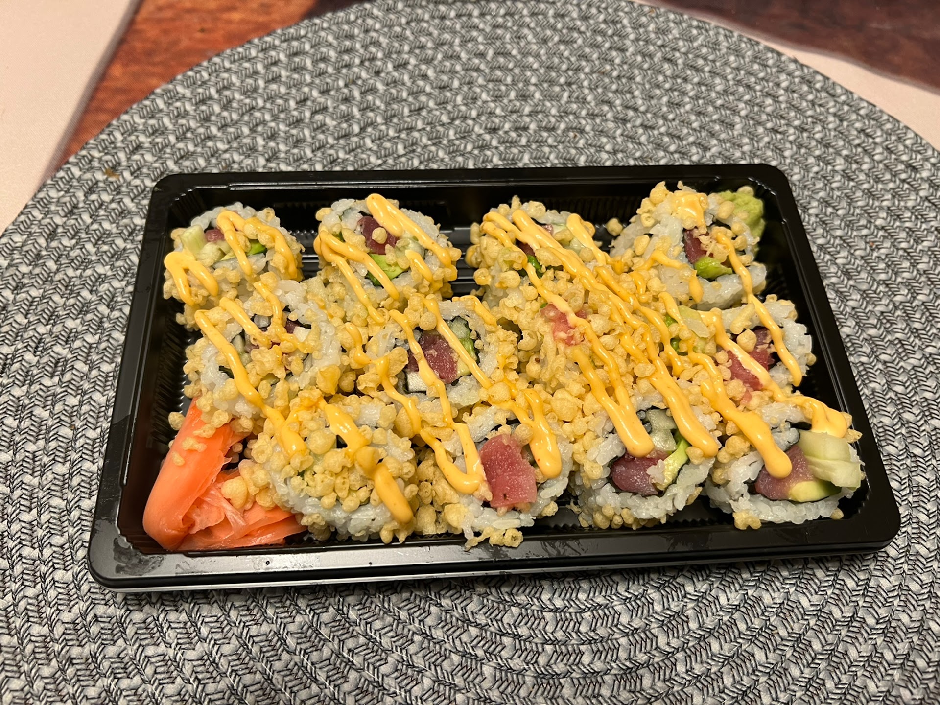 The service was very fast and friendly. I was intrigued by the Grilled Chicken roll because there is always less adventurous folks when it comes to sushi and it was much better then I was expecting. The Boiler California roll was very good and just the right amount of kick. The Crunchy Tuna Roll was excellent, the tuna was very fresh and the Maje sauce was great. Overall this is a great take out sushi option and I can’t wait to try some more...