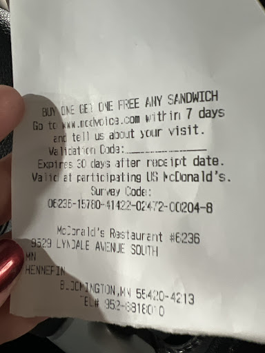 Hello, I been waiting in the Drive thru for over 15 min with a car in front of me, and 3 behind me. No one is taking orders. I said hello are you open, hello, are you there? Are you guys open? No one answers for over 15 min. The car in front of me drives to the window waits another five minutes for the Uber order, and when I drove to the window a Spanish speaking woman has the audacity to tell me she can’t take orders at the window and that I have to get back in line. There’s 5 cars behind me now, and they all were talking on the speaker and no one answer. I get it, you’re short staffed, but you could at least answer and ask us to please wait a few minutes. Not have as wait in the drive thru with no one answering, and then you have a very rude lady hating her job because she’s busy. Her attitude was not professional, very rude, and from her attitude she doesn’t care about losing customers or simply, answering, “ hello, can you please give me a couple of minutes”. All you have to do is answer when we are in the drive thru. Not asking for anything impossible. She said call the store in the morning to complain and I said, give me the manager’s name and store number and I will and she gave me this receipt. 2 cars behind me cursed her out, and left. I am parked writing this review, so that’s how I know if you’re wondering how I heard them. Please, have people that at least answer us in the drive thru window even if...