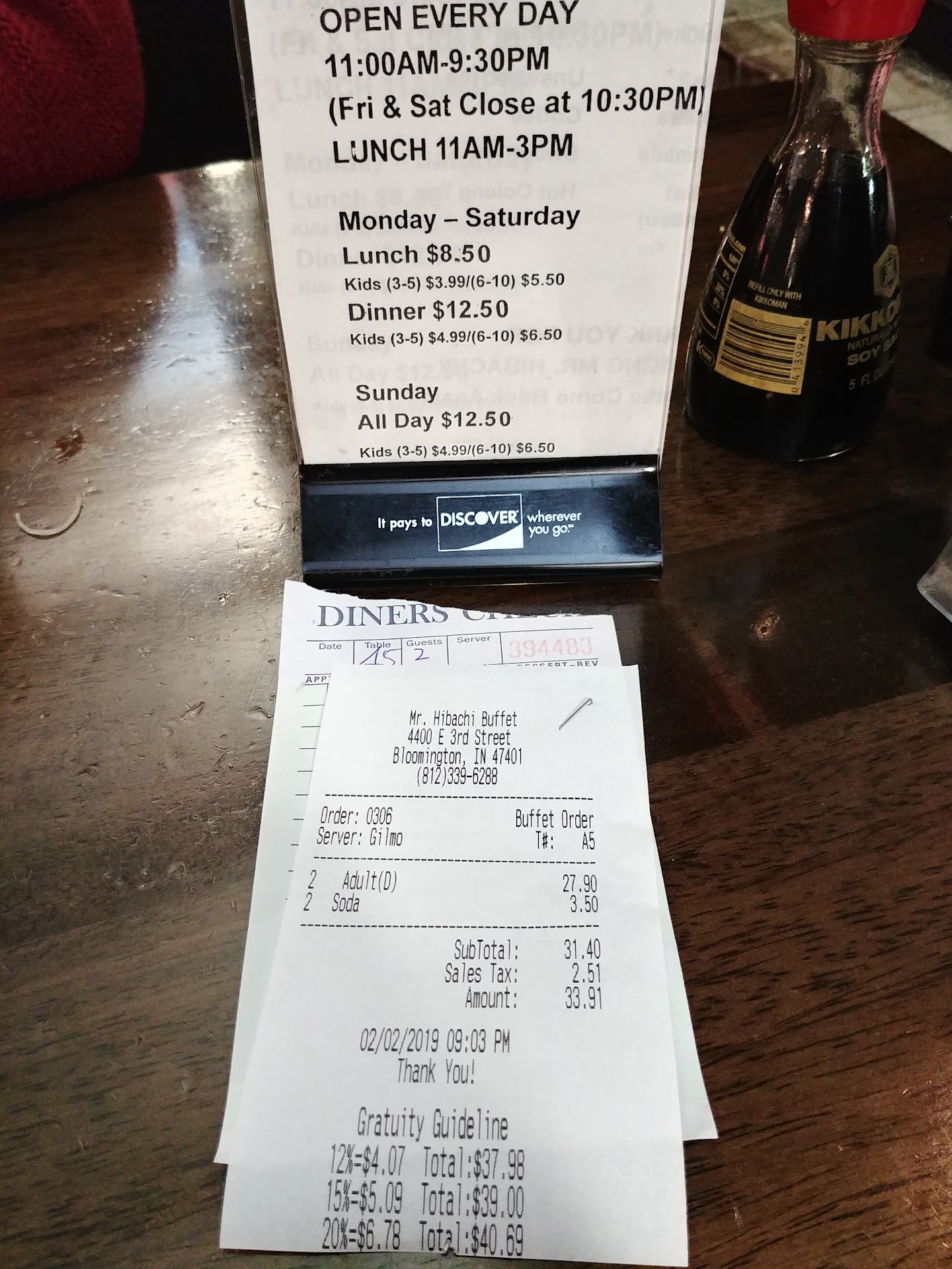 We got our check and, as shown in the picture, the price doesn't match. Ask him and he says it is the Chinese New Year Special Menu price. That there is a sign up front. I asked what was special he says crawfish... I didn't touch the crawfish and have seen crawfish on buffets at cheaper places but whatever.