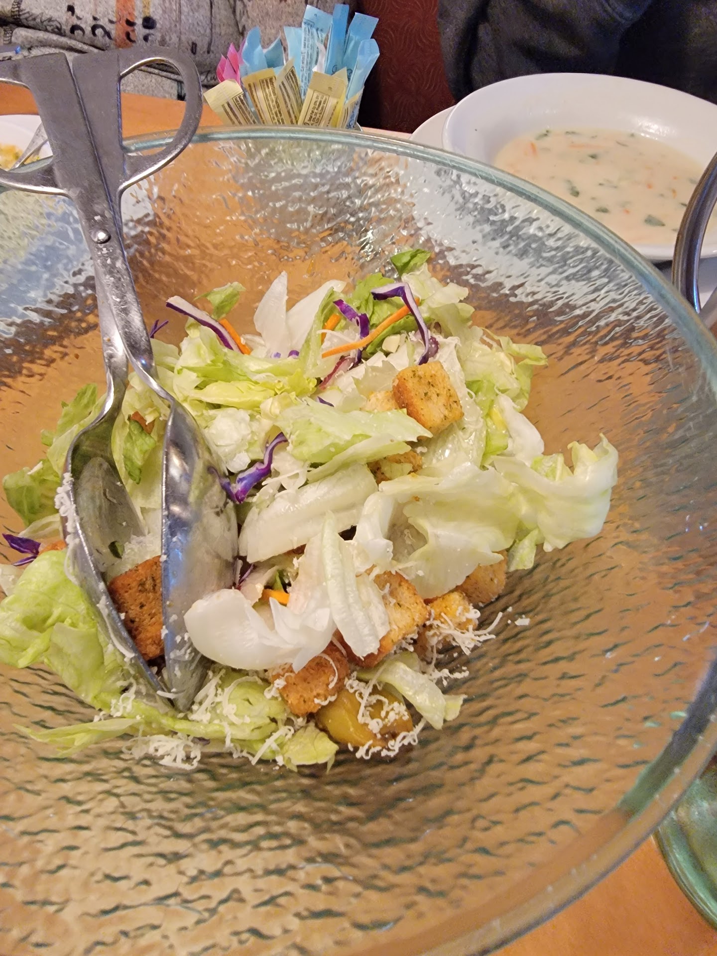 Read moreI'm rating this a 4 only because I know everyone has a bad day and we all have to start somewhere. We weren't in a huge hurry which ended up being a good thing. Seated almost right away which we thought was a good sign. We were wrong. 5 minutes later we were greeted by ? (Mumbled her name and I never caught the nametag)name tag) and we gave our beverage order. Another lengthy wait and we got our beverages and breadsticks. No salad for the table. One of the things we like about Olive Garden is the salad. When she came back (another wait) we ordered our food and an appetizer. My wife ordered soup and I had been anticipating the "Never ending Pasta". No salad. When we asked about the salad her response was "well they have to make it". Huh! I had not thought of that! We got our appetizer. No salad. Really? I am diabetic so the breadsticks were just temptation and I knew I was already having pasta (or so I thought). FINALLY salad. There was 1 tomato slice, no peppers and 1 black olive....but it was salad. When I got my pasta not long after the salad it was warm, not hot. When I mentioned this my wife said her soup was also not hot and the coffee my daughter ordered came out Luke warm. My angel hair pasta with Alfredo was good though and then I waited. When she finally came back I ordered a 2nd "Never ending" pasta and waited. Everyone else was done eating. We decided it wasn't "Never ending", it was "All you can wait for". When it did come I took a couple of bites and since it was warm and had little sauce I would just take it home and add some Alfredo to it and eat it then. The manager came by and gruffly asked if we had asked to see the manager and we honestly said "No, it was the table next to us that had just left; but while you are here..." After hearing our story he did try to make it right on the bill, so our bad meal didn't cost us as much, but I would have rather paid full price for a great experience and food. AND to be fair the large party of 12 that was finishing up with another waitress were singing praises to her, the restaurant and the food! So, our experience may have been an isolated case. Hence the 4 stars. Would I go back? Yes. Would I relate thus experience to my new...
