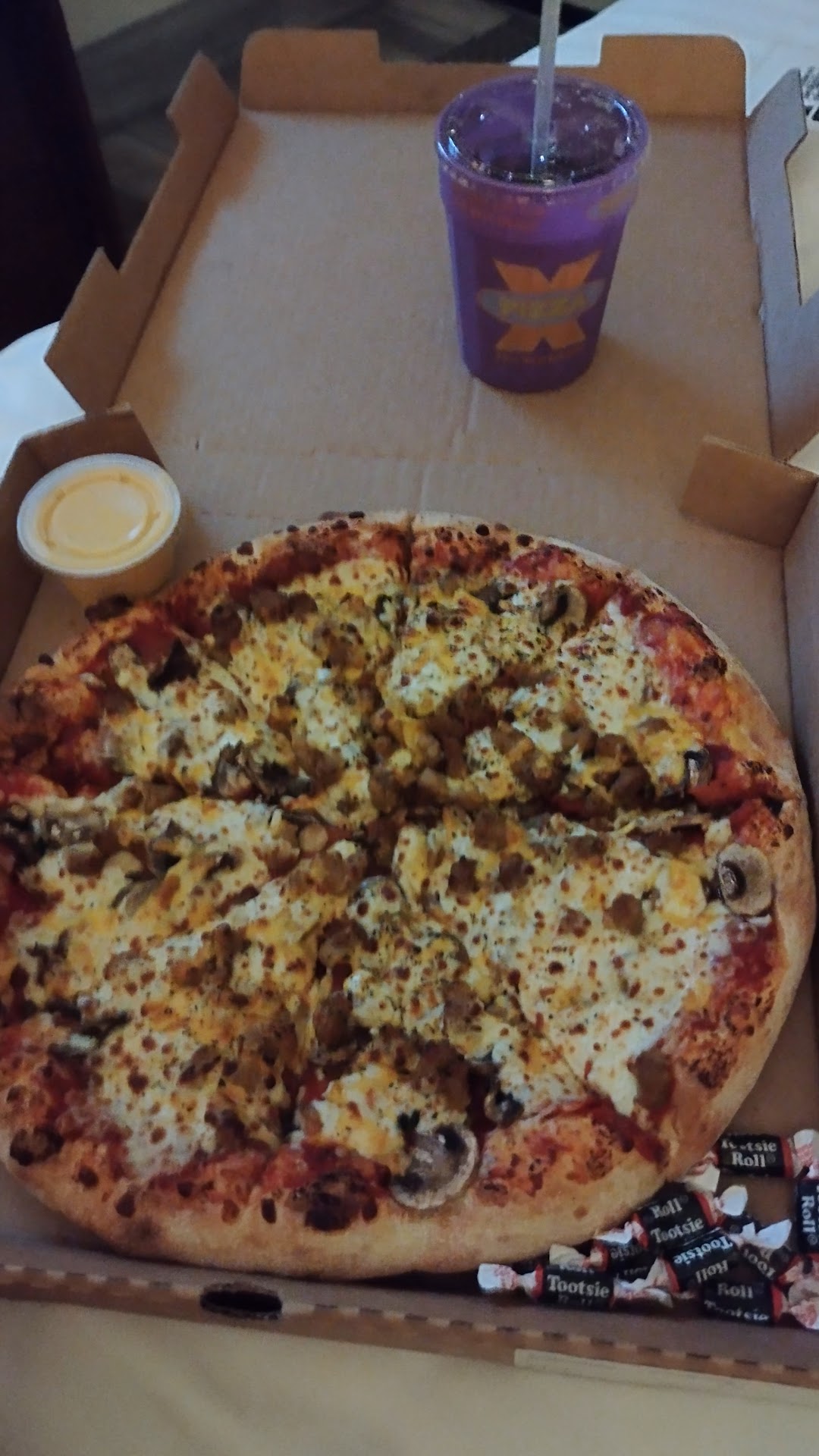 Ā Ā Ā Read morePizza X is by far my favorite pizza place in the US. The Pizza is amazing, delicious, and not greasy at all. Often other pizza places hurt my stomach after, from all the grease, but Pizza X has never affected my stomach and allowed me to eat a LOT of pizza in one sitting. They have the best breadsticks I've ever had. They're perfectly salty and doughy. Dip them in the cheese sauce, it's phenomenal. Highly recommend getting sprite with pizza, the combo of Pizza X pizza and Sprite...