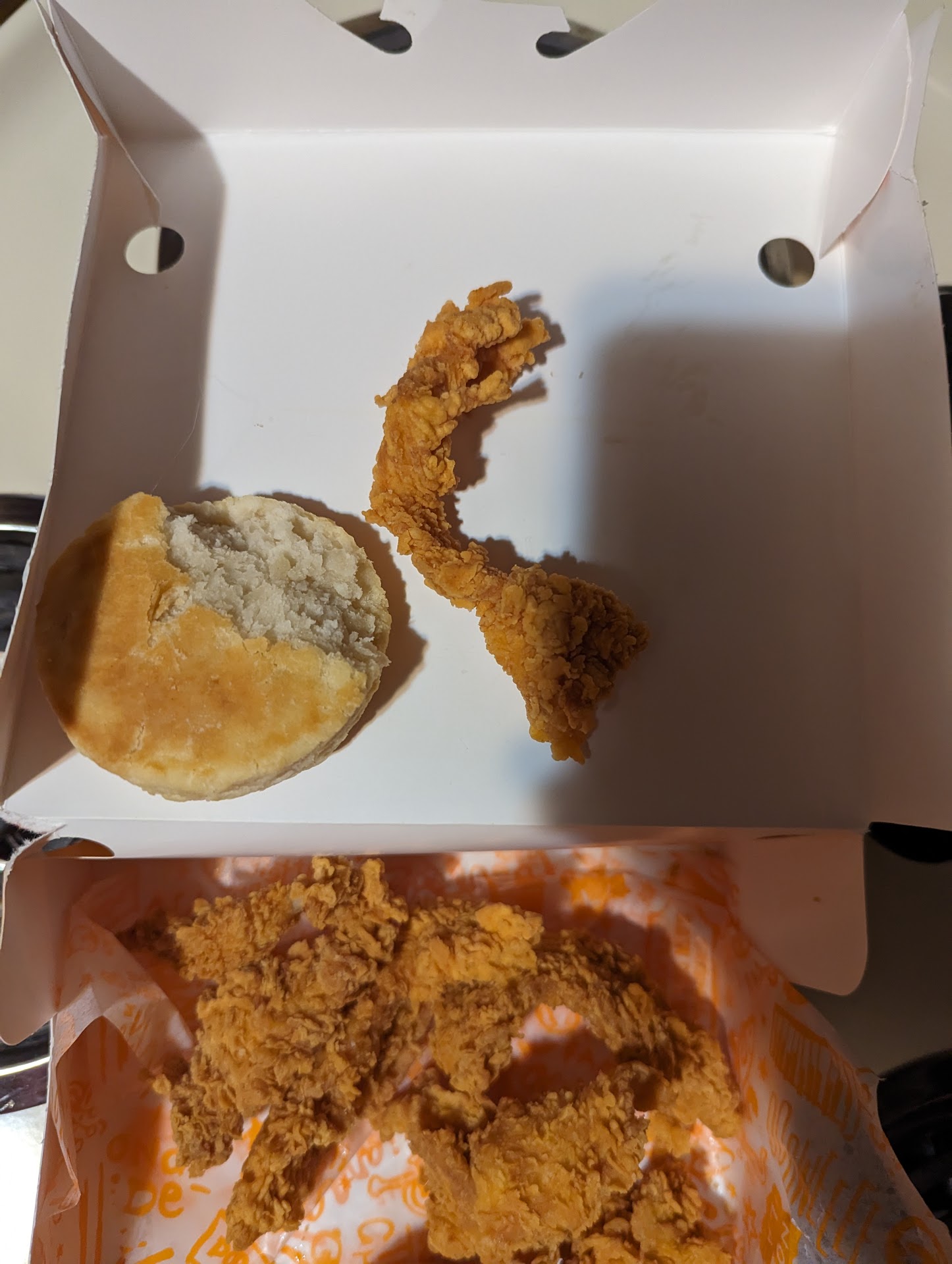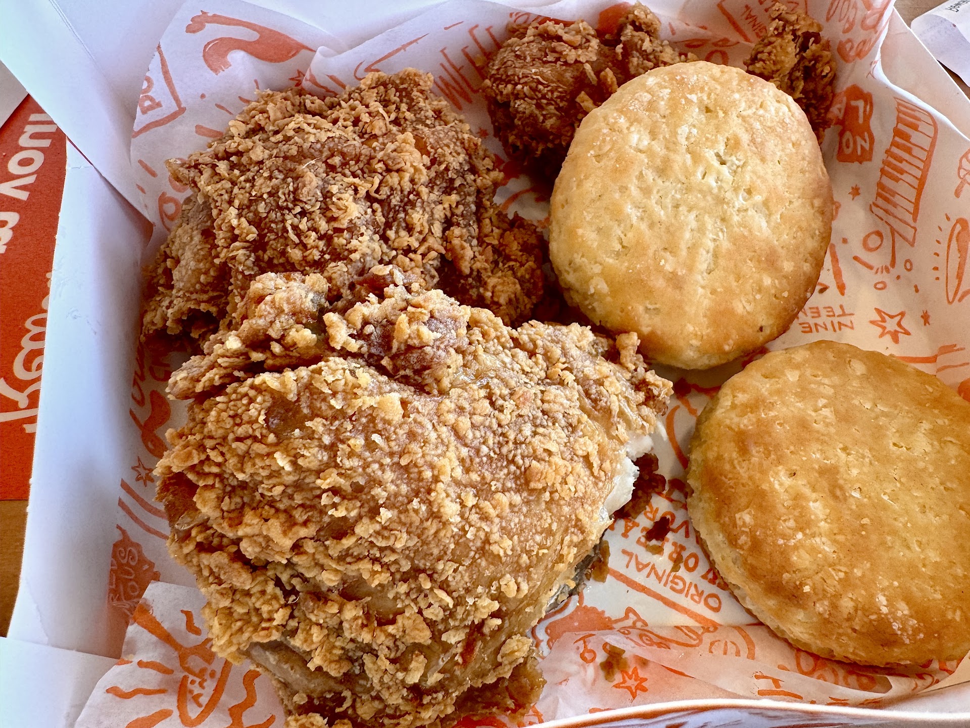 As for the food, it was wonderful! Whoever is cooking those little shrimp guys is doing a fantastic job! And the biscuit, my goodness, it was very good!