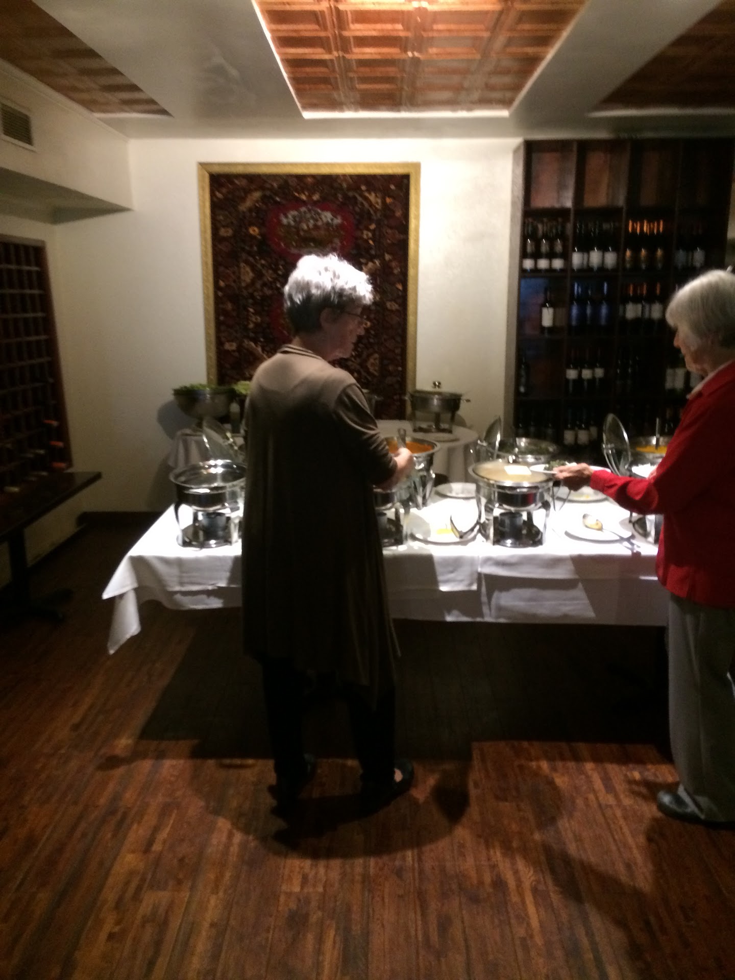 The dinner begins with an appetizer of badenjan (baked eggplant with garlic), which is really wonderful. My partner had a dinner of appetizers so he could sample different kinds of food. I had quabili pallao (seasoned basmati rice with carrots, raisins, tomato-onion sauce and a choice of lamb or chicken), and tried a side dish of butternut squash, which I have never cared for as an American dish.