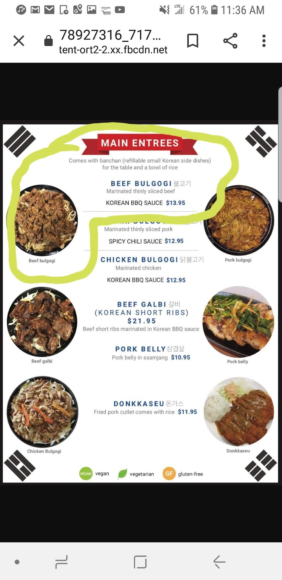 Read moreCurrently, here for a week for business training. Want to try Korean food in the area. Found this place on google search. I had to wait for a table when arrive. While waiting my first impression was where are the Asians. I didn't see a single soul inside. Me and another person that was with me was the only Asian. I didn't see any Korean chefs. I did see an ajumma walk out of kitchen. But I finally got a table. I ordered pork bulgogi with sweet tea, waiter said it was spicy. The tea they didn't have sweet so waiter was going to bring sugar packet on side. The waiter brought out side dish which it didn't taste to good. The kimchi didn't look authentic and didn't taste that good. And it looked water down. The food arrived , my bulgogi was not spicy and tasted pretty bland. The waiter never provided sugar packet for my tea. The rice was to much on the mushy soft side. The waiter never stop by to our table or anything after, only to collect bill. My thoughts: Food was alright and prices is on the high side. Waiter wasn't attentive. It a small restaurant and there were full table. But like atleast stop by and ask how everything going are if need anything. I HONESTLY should have gone to a korean BBQ instead. Would I...