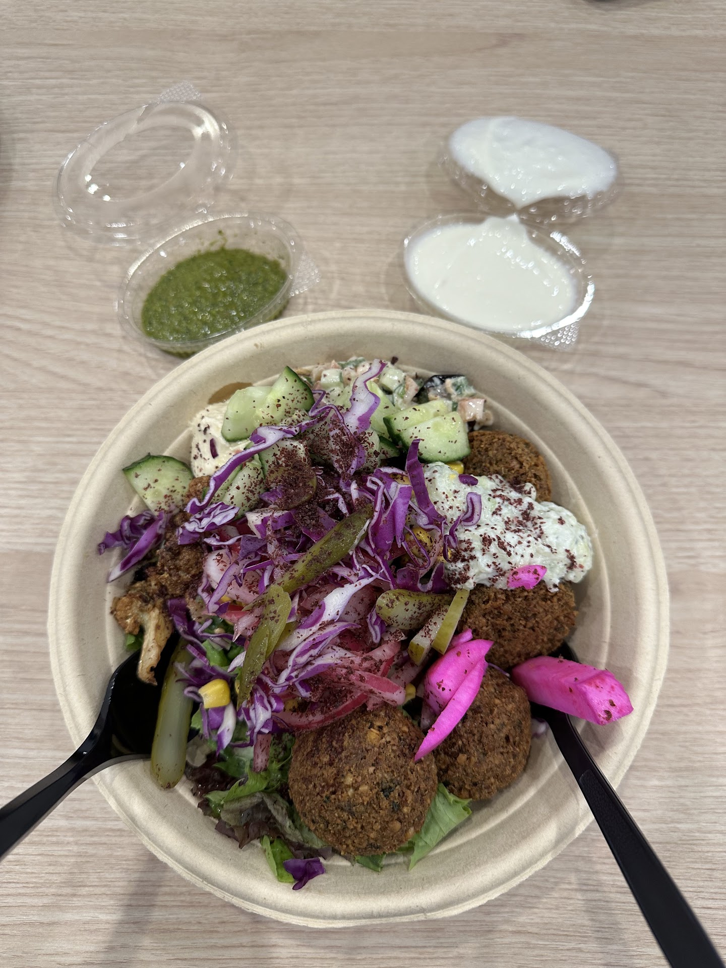 Iâve taken a falafel rice bowl, I must say it is a premium product and well below the market price. I have been visiting Mediterranean spots for quite sometime now and this one tasted amazingly good. 10/5 for the bowl. Price to portion ratio is beyond standards. Falafel is not too fried and did not smell oily which usually happens in eateries working in the same price band. Veggies are fresh and toppings are all tasted well.