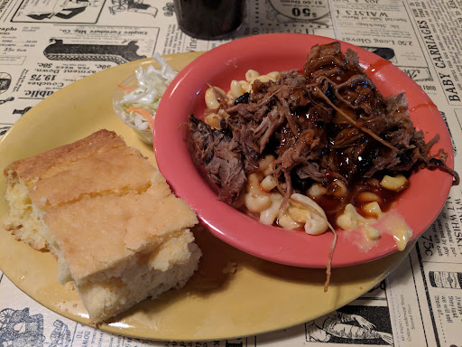Read moreWhat an experience. A must for the bbq enthusiast. First and foremost, food was wonderful, more on that in a minute. Staff was friendly and inviting and more than helpful, food was delivered promptly with a courteous smile. Accommodations are rustic, mom and pop-ish, down home atmosphere with a cozy fireplace, warning, you wait for a seat by it. After the staff, seating and atmosphere, i expected to be disappointed with the food, something had to fall. Not a chance. Half Rack dinner with potato salad and baked beans. Beans were okay, not much sprucing up there, but the potato salad, Y.U.M. No question my second favorite potato salad EVER. Only second to my mom's. Now the ribs. The half rack reminded me of Dino in the Flintstone's drooling over his brotasaurus leg. The mound of ribs was much more than expected for a half rack. Meaty, dark smokey crust, nice red ring underneath and meat that litterally falls off the bone and melts in your mouth. No teeth required. The light dressing of bbq sauce was just right to give the smokeyness of the bark a slight mellowing, neither being to strong or to weak by themselves but as a dynamic duo, there was a BAM, POW and a BOOM in my mouth... Honestly, an absolute delight to the most delicate or robust pallet. A very rare ballance of smoke and flavor that is hard to come by. Ribs here make the top five of my all time faves, and being from St. Louis, in the "Show Me State", they showed me why they come with such high acclaim. Only real disappointment I had during my trip was, well, the baked beans(- half a star), and they were out of Budweiser(- half a star)... Will be back next time I am in town... Save me at least a full rack...