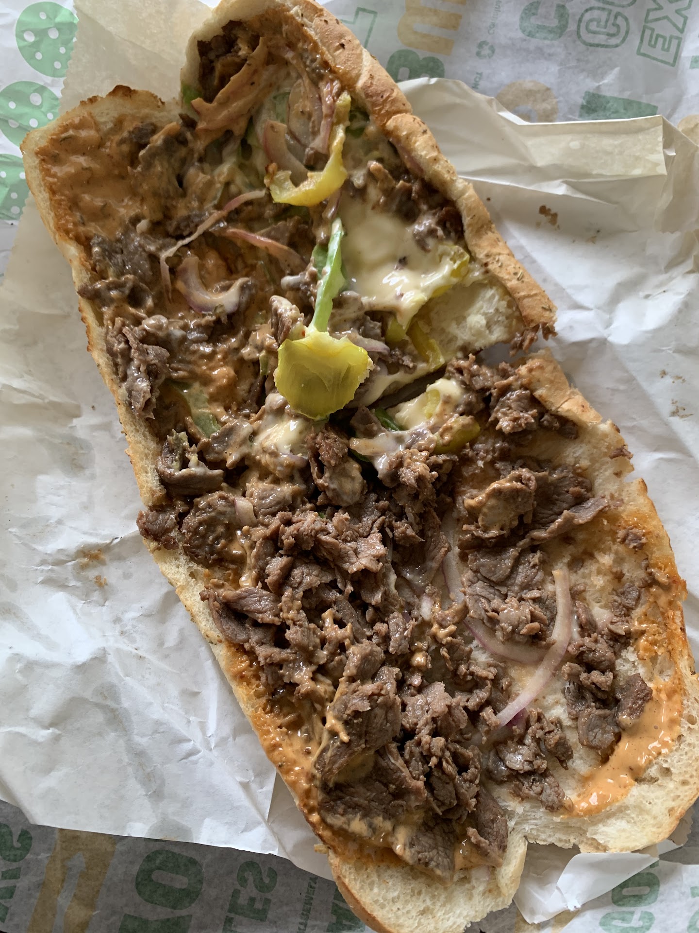 With My order, she starts with the usual questions: what bread, then what meat, I answered. THEN if want it TOASTED. I said No. She asked again, I said no, not toasted. She said "the meat is cold". I had to lean over a bit since a BIG METAL COVER was BLOCKING my view what she was doing, & I couldnt even see the meats or cheeses. She put the cold meat on the bread & looked at me like the Only 2 choices are: COLD MEAT or TOASTED. Hmmmm wife was hungry (Hangry) so FINE TOASTED. If I only eat HALF, it's MOIST the next day and not so good, which is the case.
