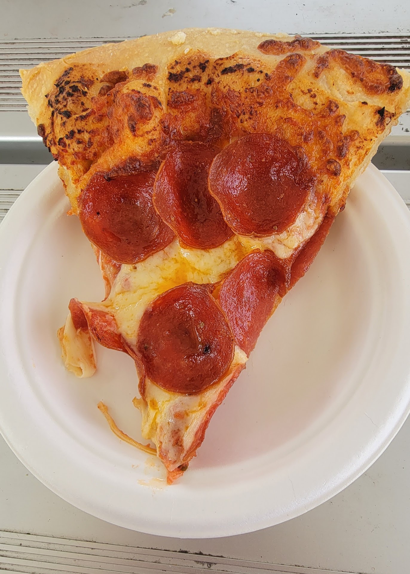 The cheeseburger pizza is delicious, but I added ketchup and mustard. 😋