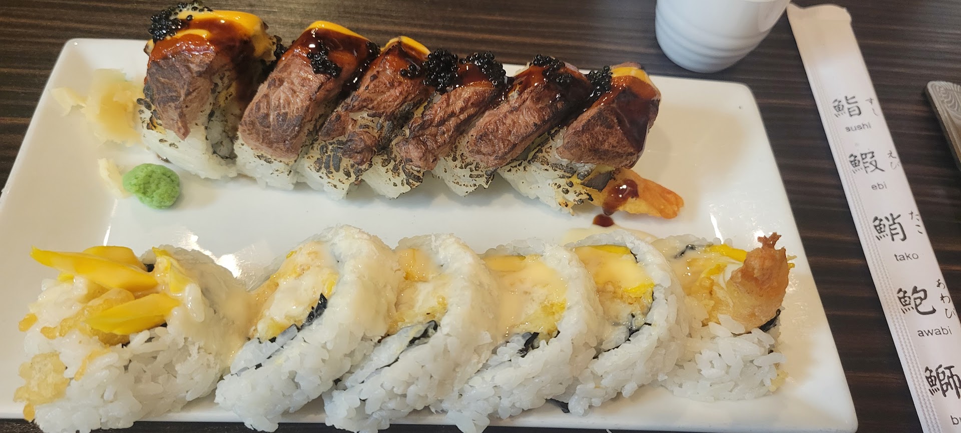 Read moreI tried Yumz twice. Once for carryout, and once for the all you can eat sushi dine in. The carryout was OK, I got salmon nigiri, salmon roll and a sweet potato roll. The rolls were decent, the nigiri was better. The rice has no flavor (ie no vinegar as typical sushi rice has). This could be a good thing for some, but I prefer vinegar and flavor on rice for sushi. I was also given fake soy sauce packets with the sushi (the colored salt water packets from Chinese takeout ), luckily I always have the real stuff at home. The all you can eat was not as good. The nigiri had very small cuts of fish (think 1/3 regular size) and a limit on nigiri. There was way too much rice on the rolls, and not enough fish. For the price, I would not recommend the all you can eat option. They do have a lot of appetizers, which adds to the value - the gyoza were good. Overall, I probably won't go back due to mediocre...