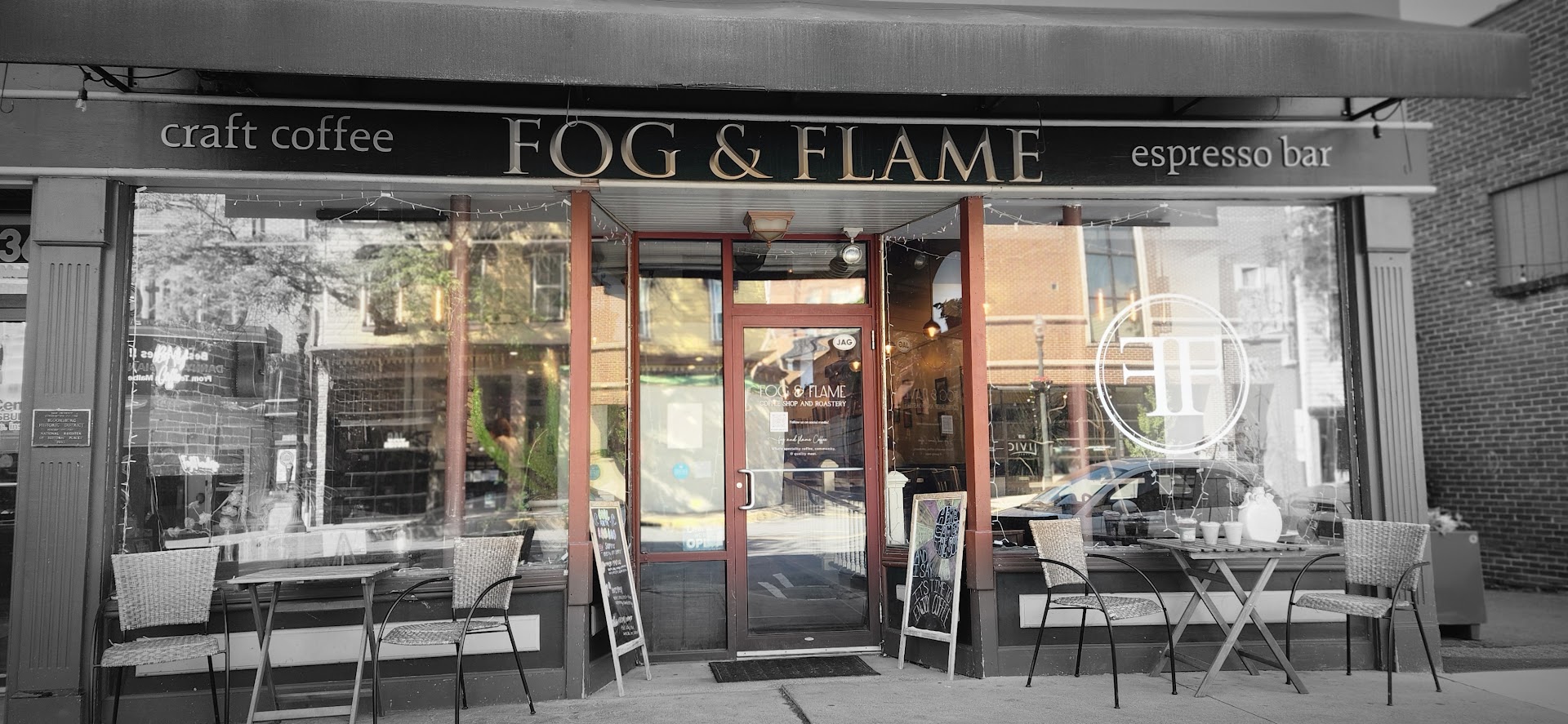Ā Ā Ā Read moreFog and Flame is a great new coffee house located in downtown Bloomsburg PA. The atmosphere is great for studying, relaxing, or just chatting with friends. Comfortable chairs, a coffee bar area, and four armchairs dot the interior, while warm inviting brick, crĆØme, and mahogany walls create an inviting environment. Free Wi-Fi is available for those studying, or simply surfing the web. The staff is always friendly, and seems willing to chat with those sitting at the bar.