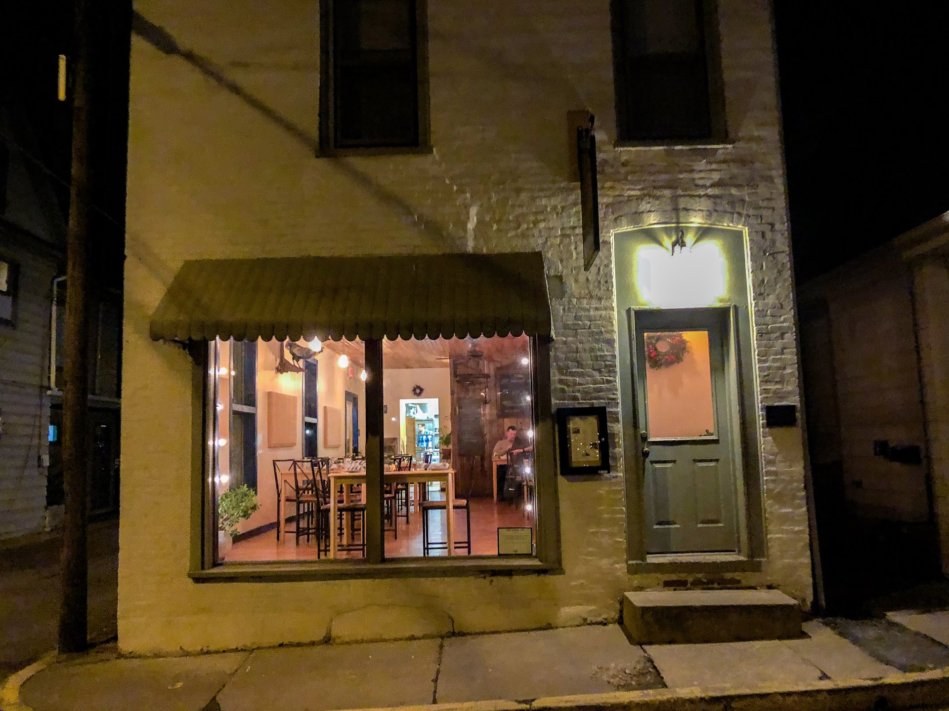 My fiancรฉ and I went for valentines day with reservations for our first time as I like little places with neat decor and tight menus with unique items. She ordered the cavetelli and I went with the duck and we both got a crock of French onion and split a cheese plate. We forgot to get some fancy tea and kombucha and i ordered a slice of mixed Berry clafoutis.