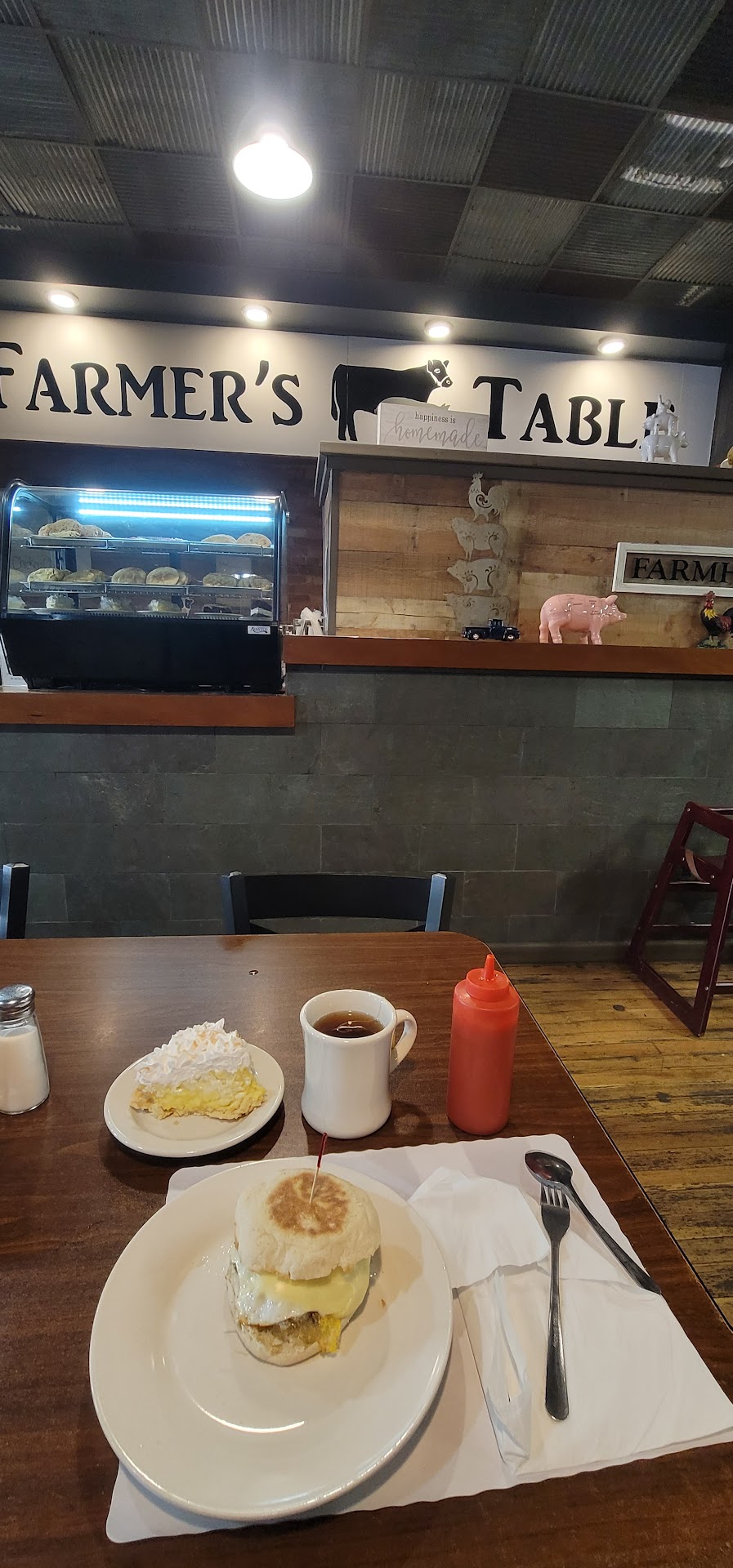 Read moreHappiness is homemade. It is a sign that greets you at the counter; that and the case of gorgeous pies and cookies. So if you are driving on the nearby highway or just visiting the area, this is the place to go eat.